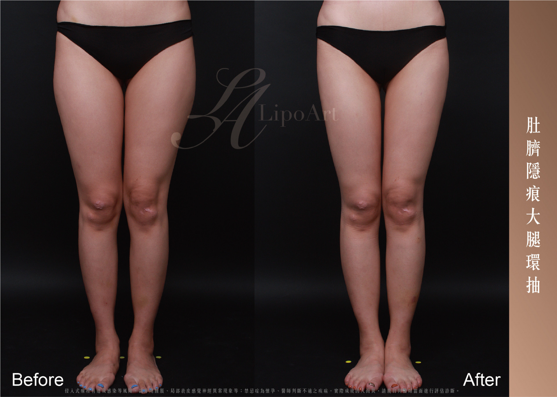 ▲ 術前整體紀錄(右):術後去除掉造成腿型比例不佳的多餘脂肪,改善整體線條,使整體線條更加筆直漂亮。