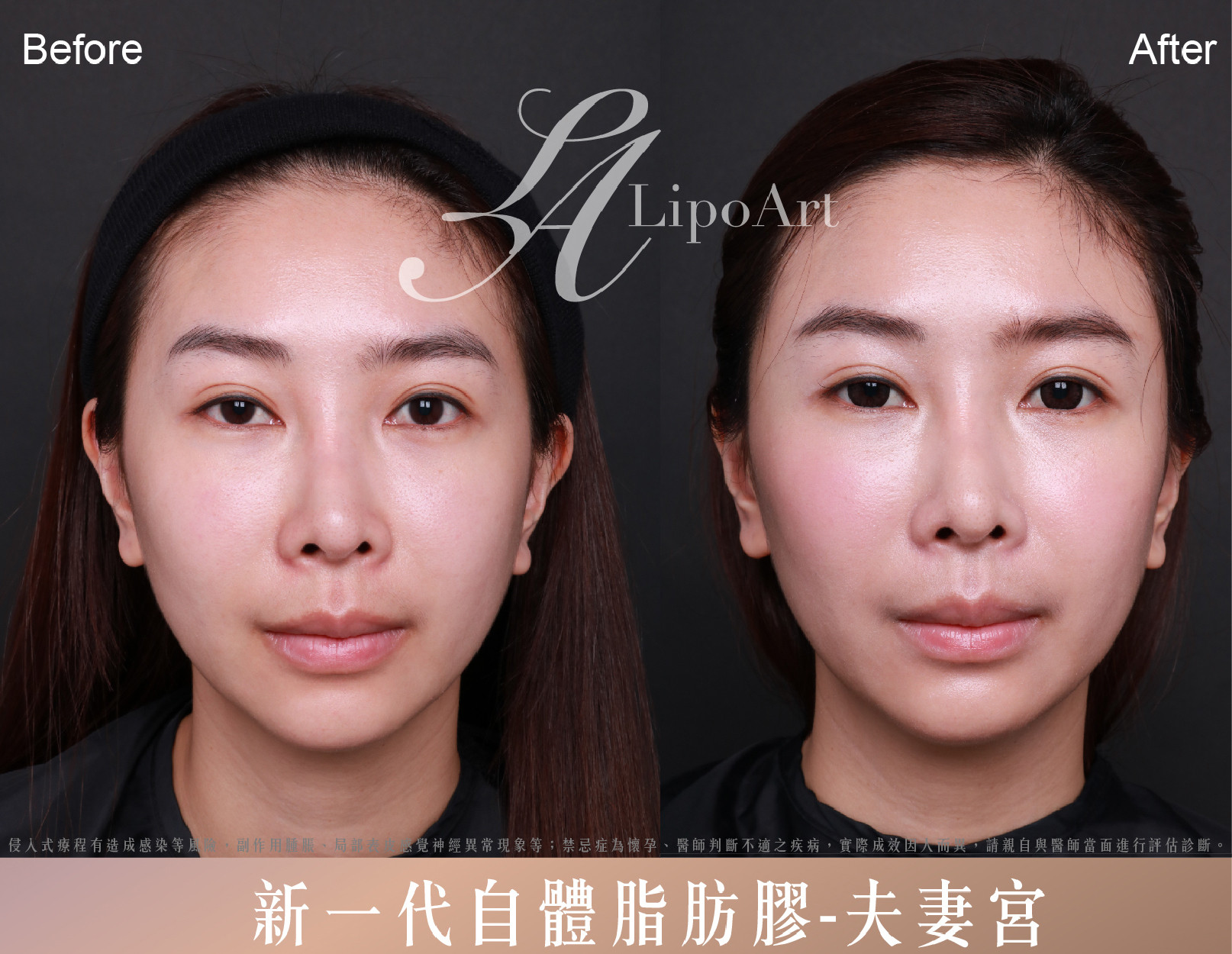 ▲ 術前正面紀錄(左):術前夫妻宮凹陷,使外觀顯得初老感較重。