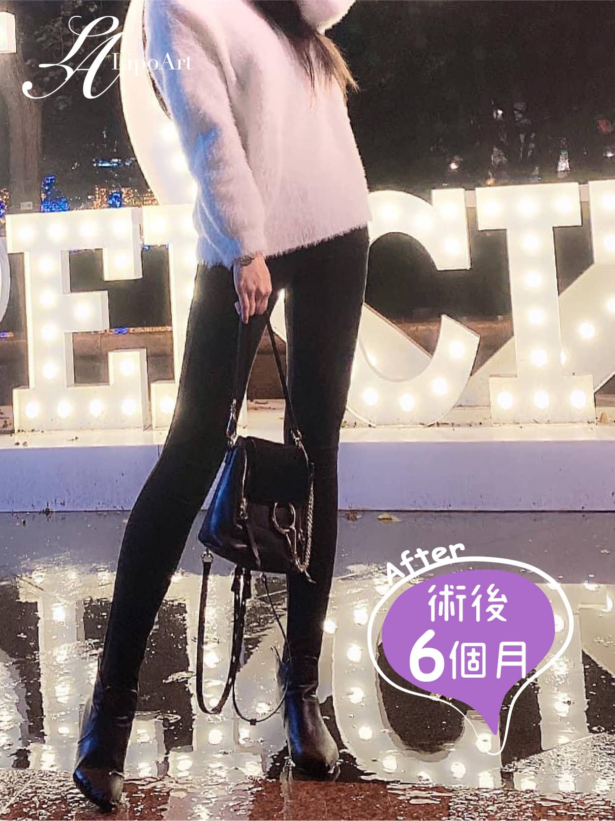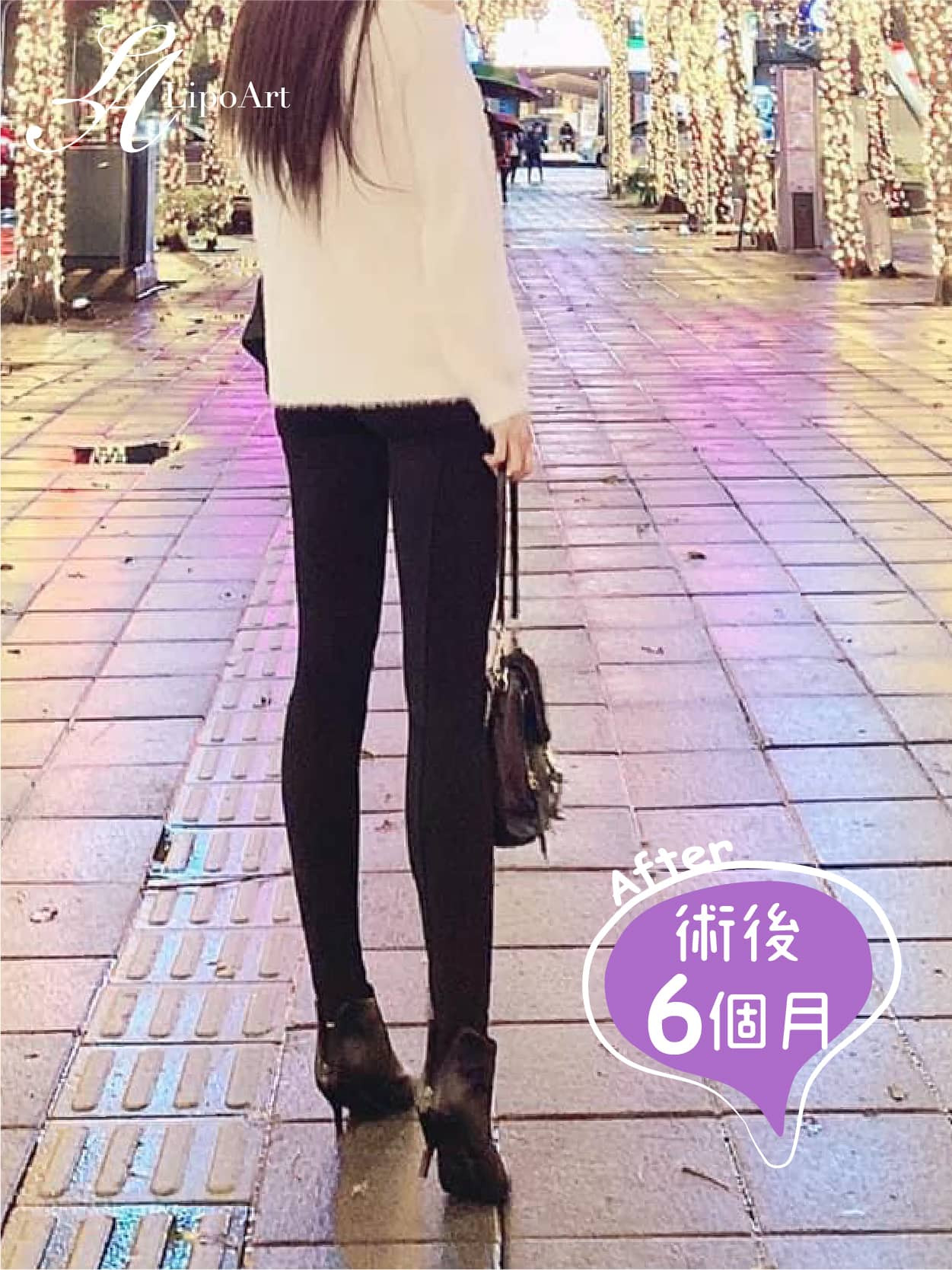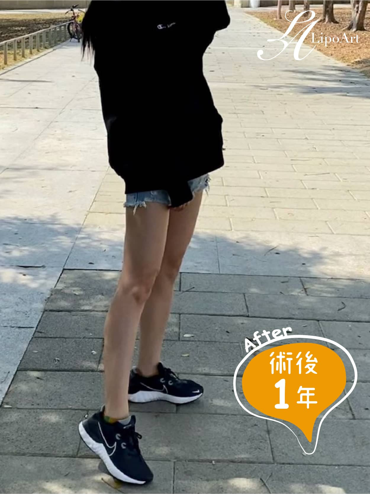 ▲術後整體紀錄(右):術後腿型明顯往內收,腿部線條更為俐落,