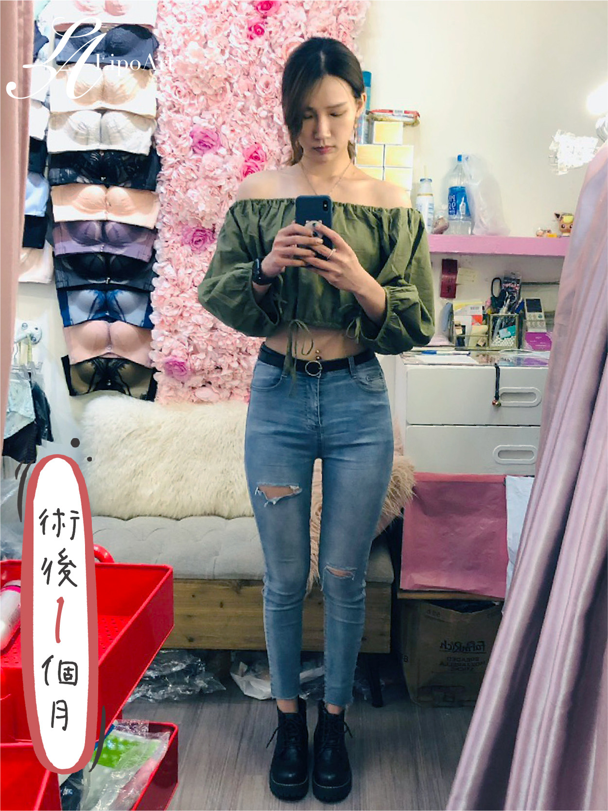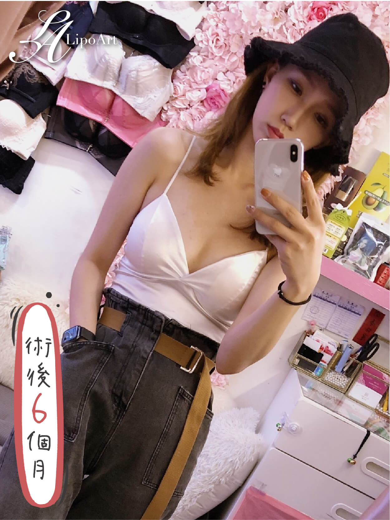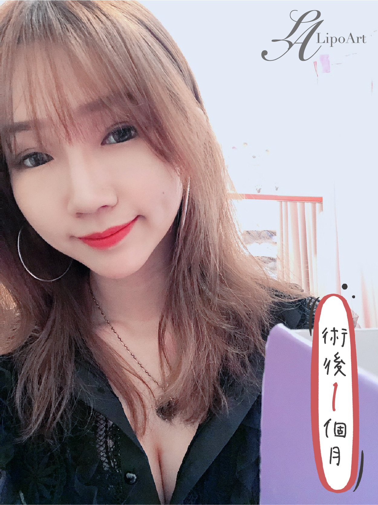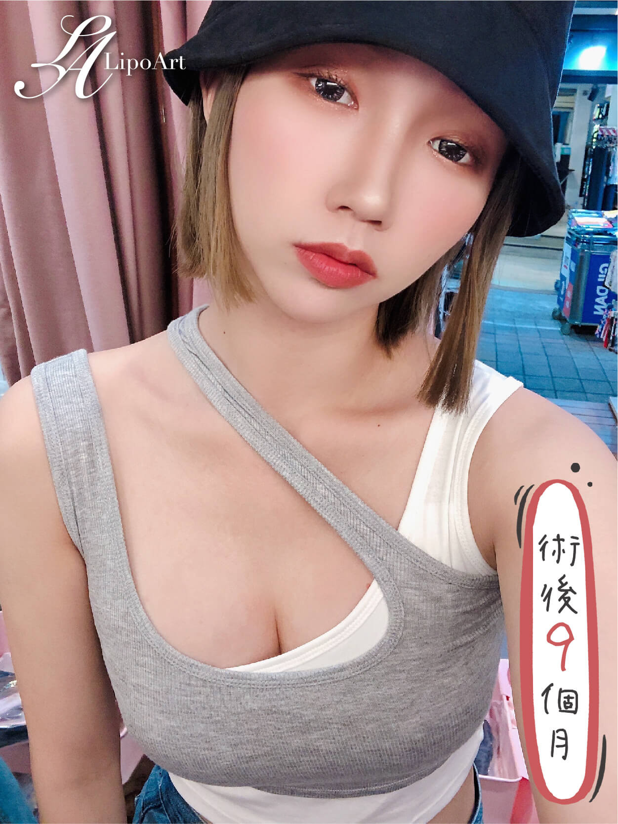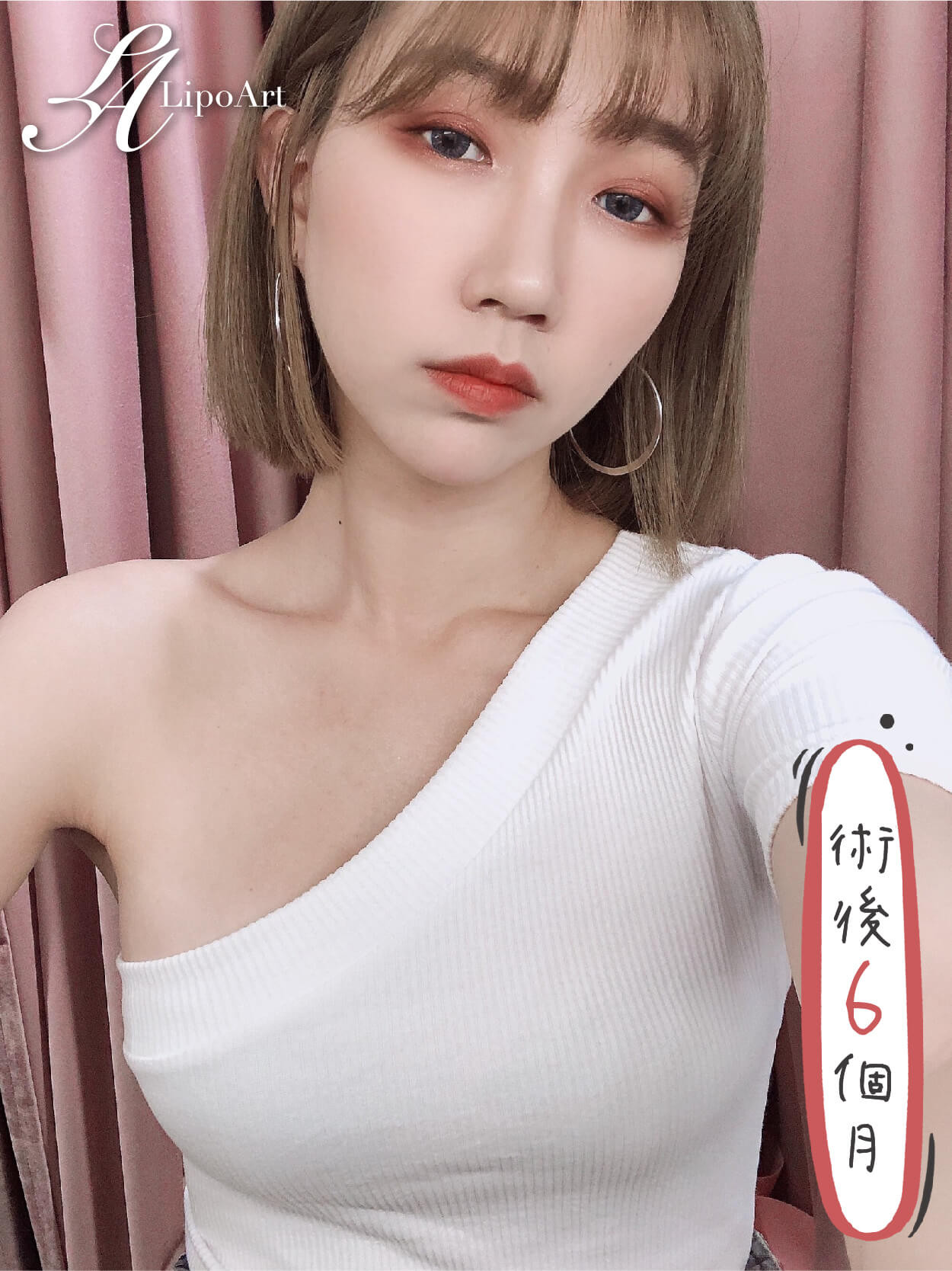 ▲ 術後正面紀錄(右):術後海鷗線條般的上胸曲線