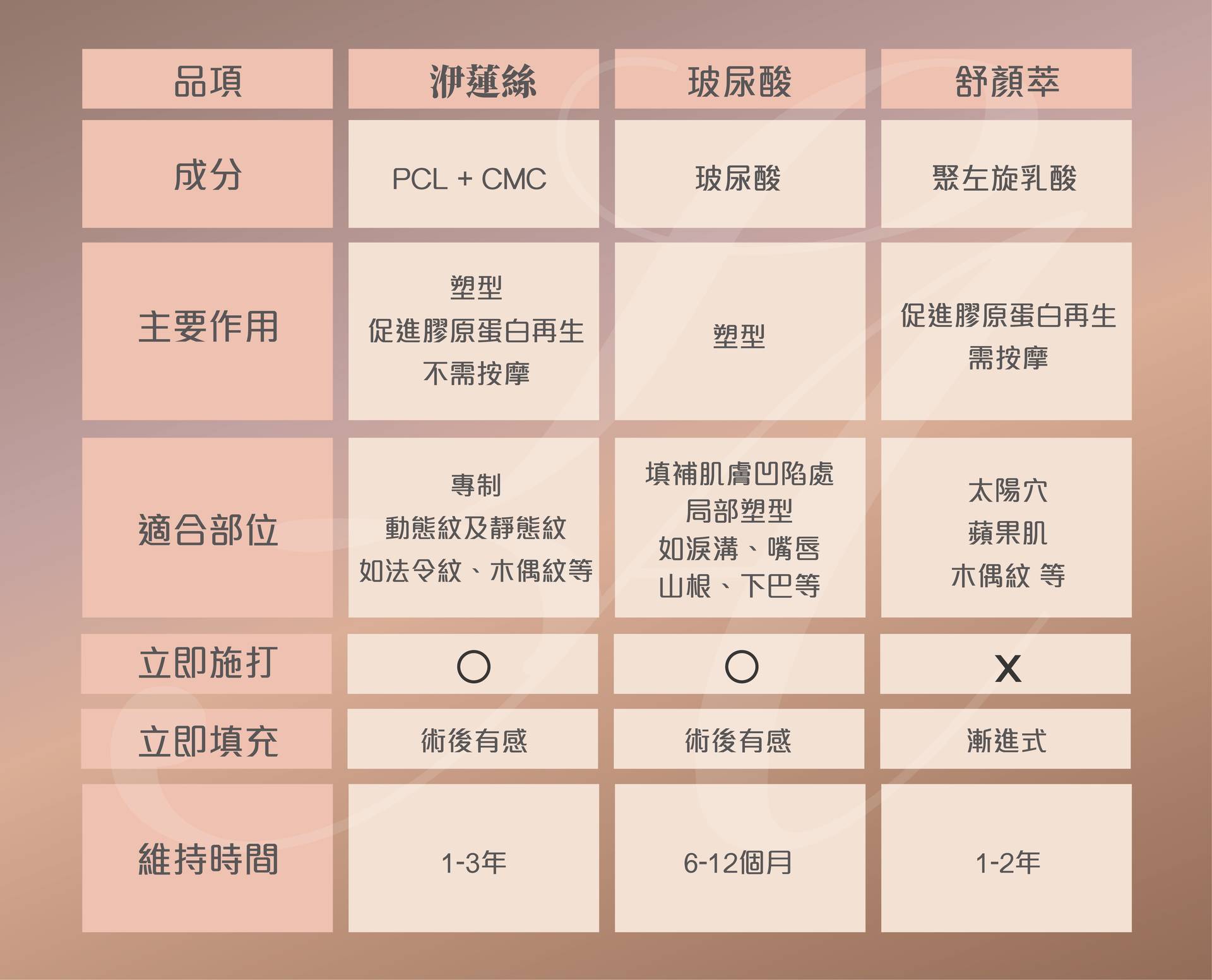 Q:洢蓮絲、舒顏萃、玻尿酸要選哪一個?