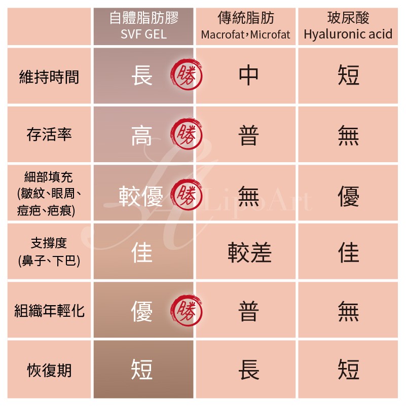 新一代自體脂肪膠V.S傳統脂肪V.S玻尿酸