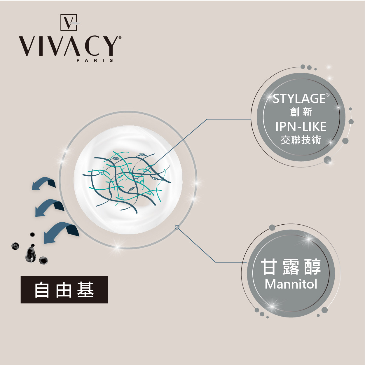 Vivacy 維法熙玻尿酸添加天然抗氧化劑-甘露醇,有效抵抗自由基,能夠減少術後發炎紅腫反應,讓術後修復期縮短、效果更自然。
