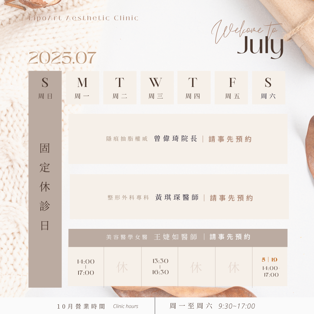 👉【女醫駐診|雷射光療X微整形】時間如下: