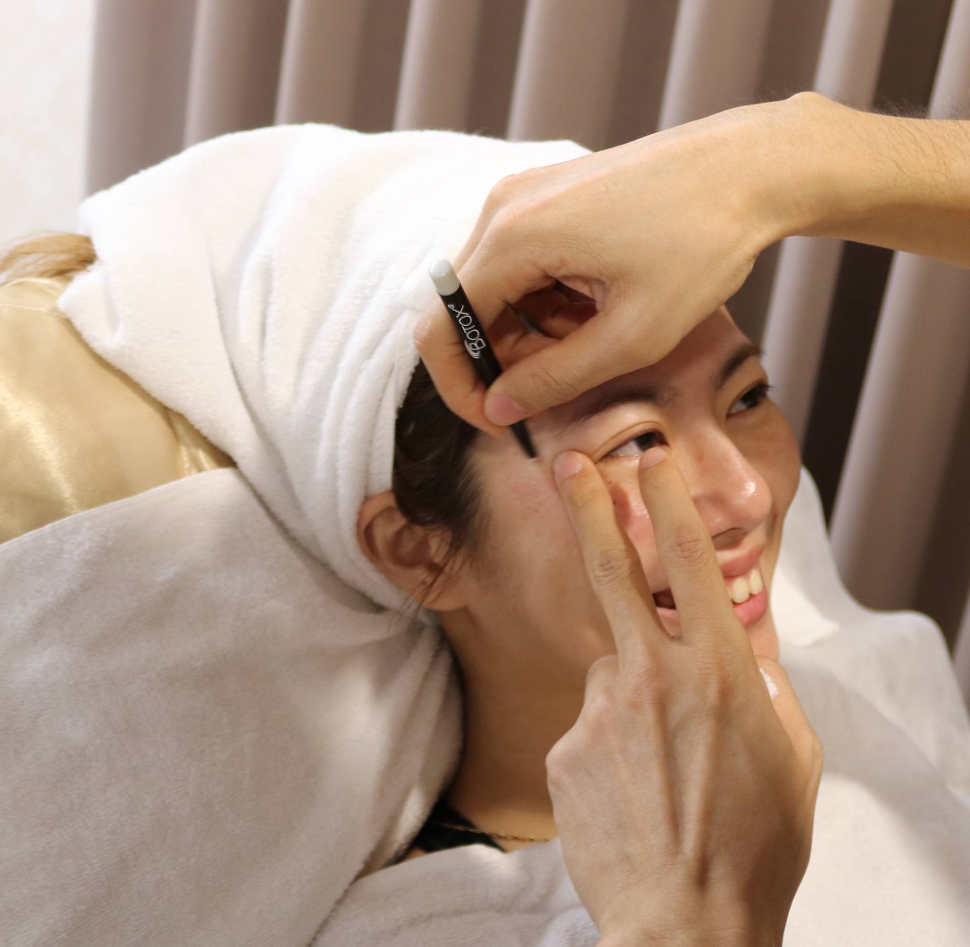 畫畫後就會開始進行治療魚尾紋部位