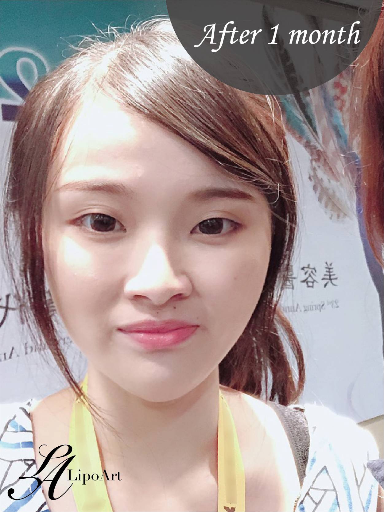 等到快一個月的時候腮幫子側邊的弧度就圓滑很多囉!