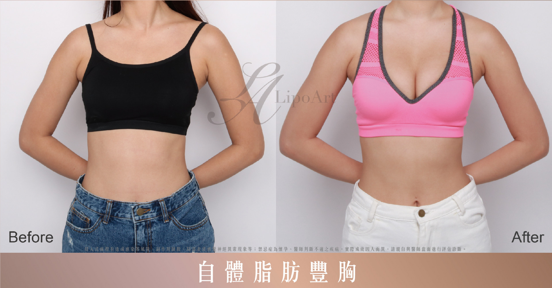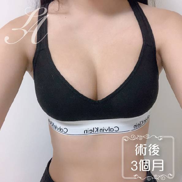 ▲ 術前正面紀錄(右):術後透過自體脂肪填補上下胸,整體視覺明顯飽滿而挺,撩人性感的事業線也更為明顯。