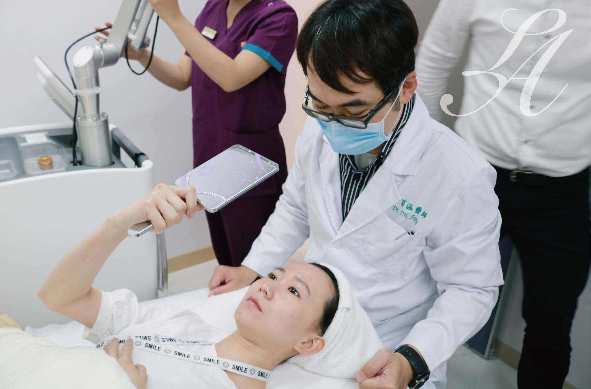 醫師耐心的講解待會術中的施打方式,