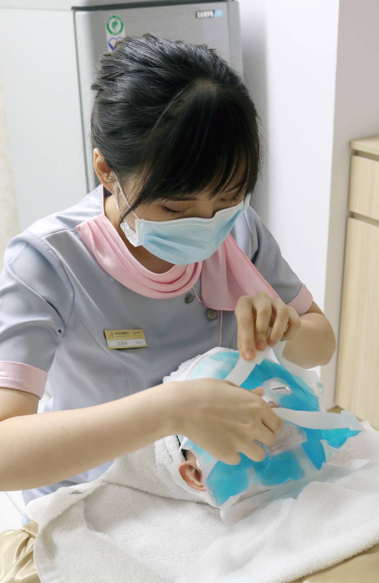 診所人員細心又輕柔的擦藥膏