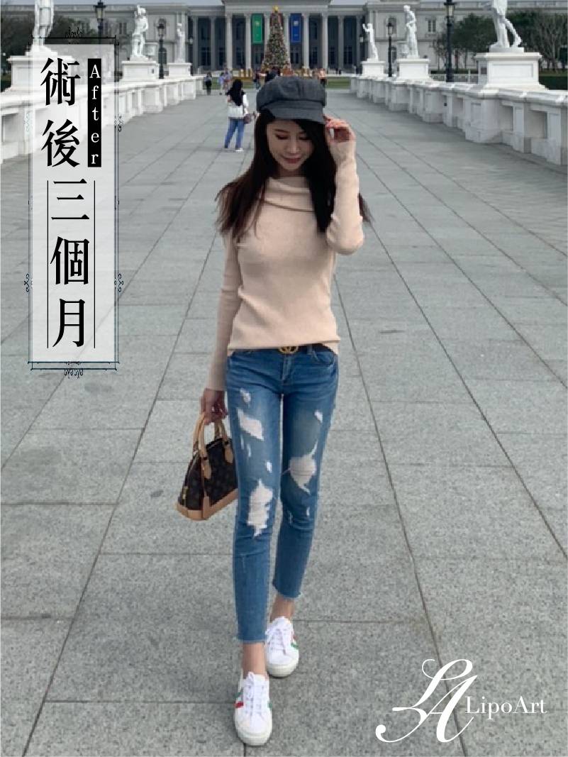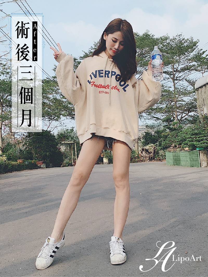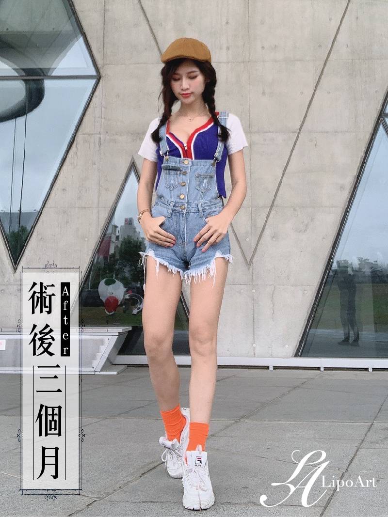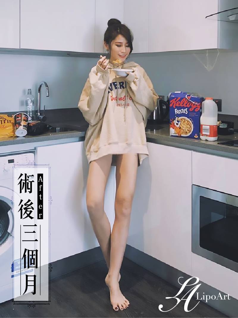 ▲ 術後整體紀錄(右):術後可以看出大腿與小腿線條連續性更為筆直,整體視覺也顯修長