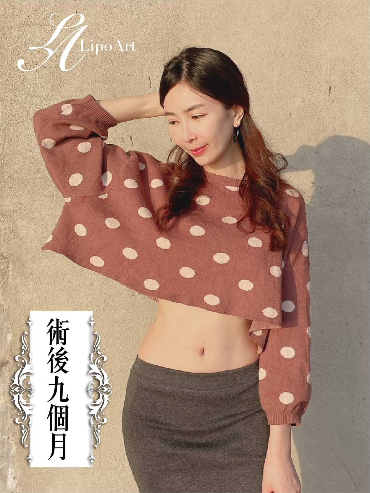 ▲ 術後正面紀錄(右):術後可明顯看出腹部變得緊實平坦,腰際及腹部線條更為纖細。