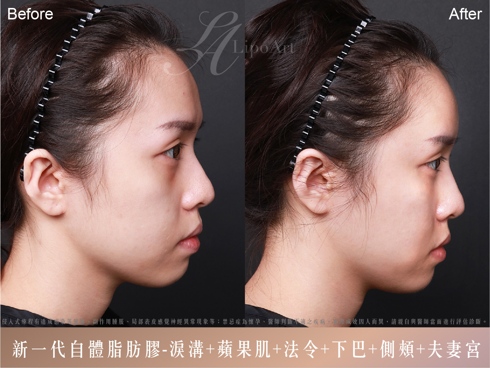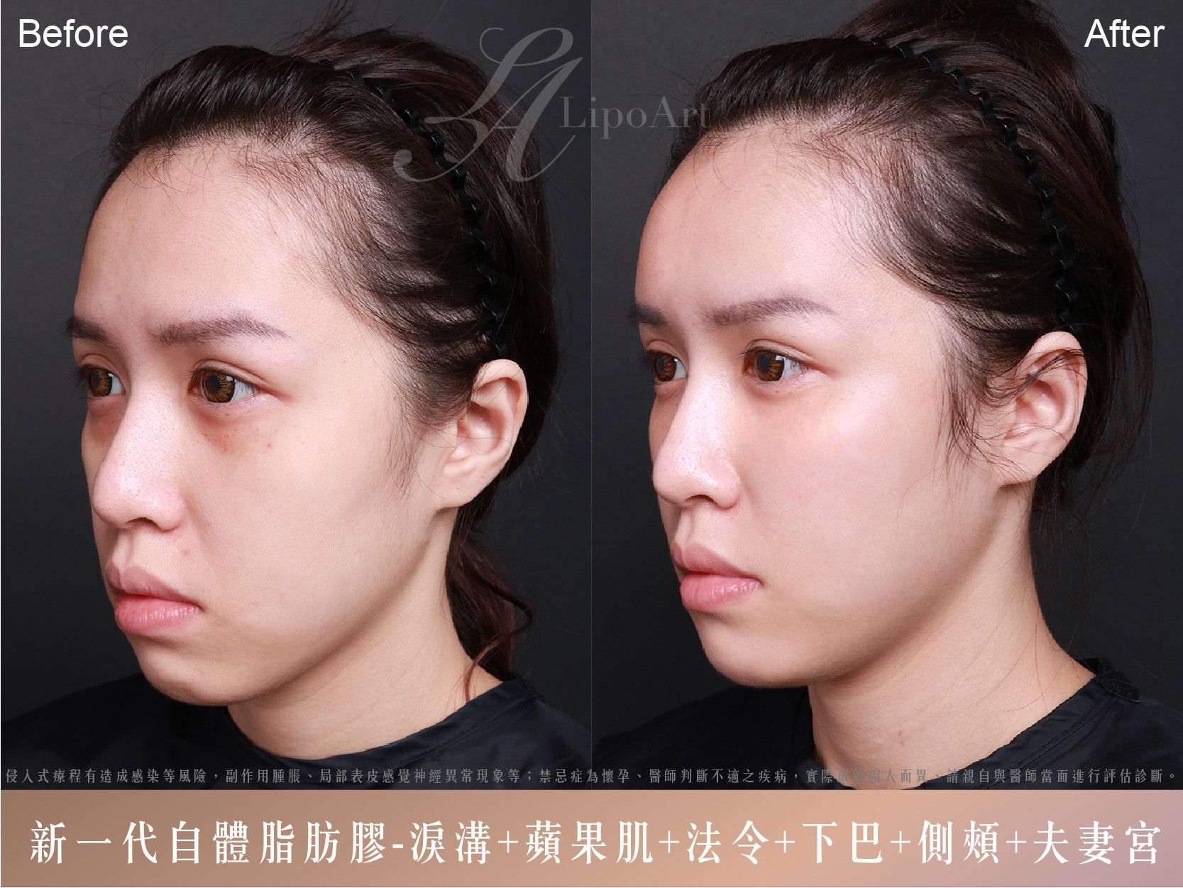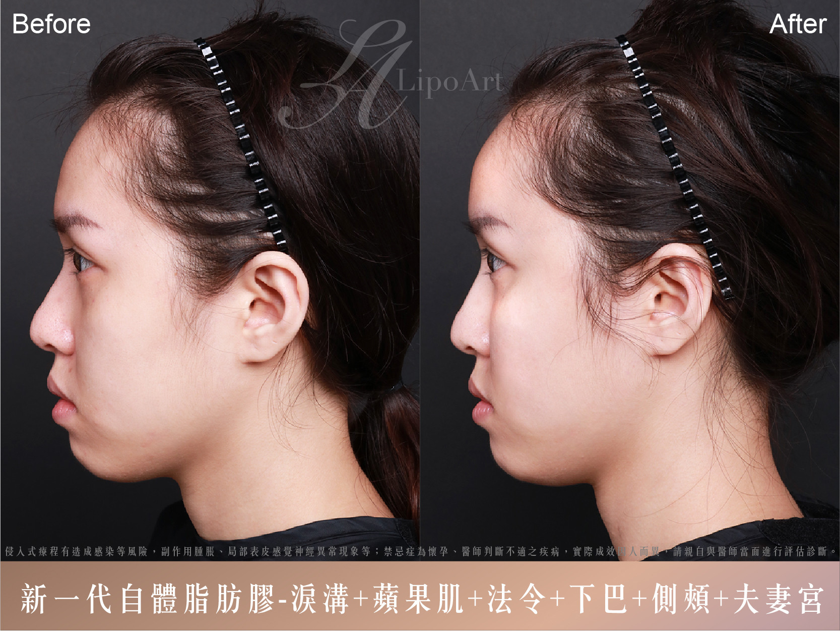 術後【新一代自體脂肪膠-淚溝+蘋果肌+法令+下巴+側頰+夫妻宮】
