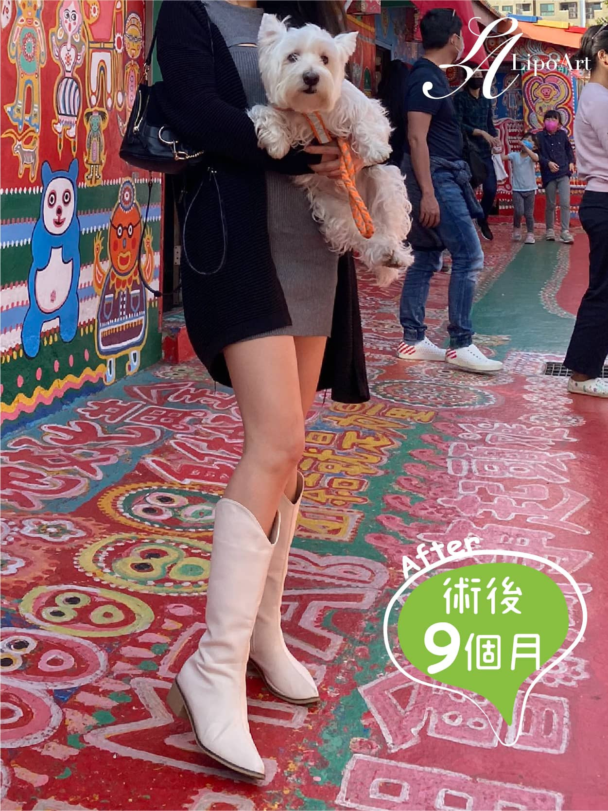 ▲術後整體紀錄(右):術後腿型明顯往內收,腿部線條更為俐落,