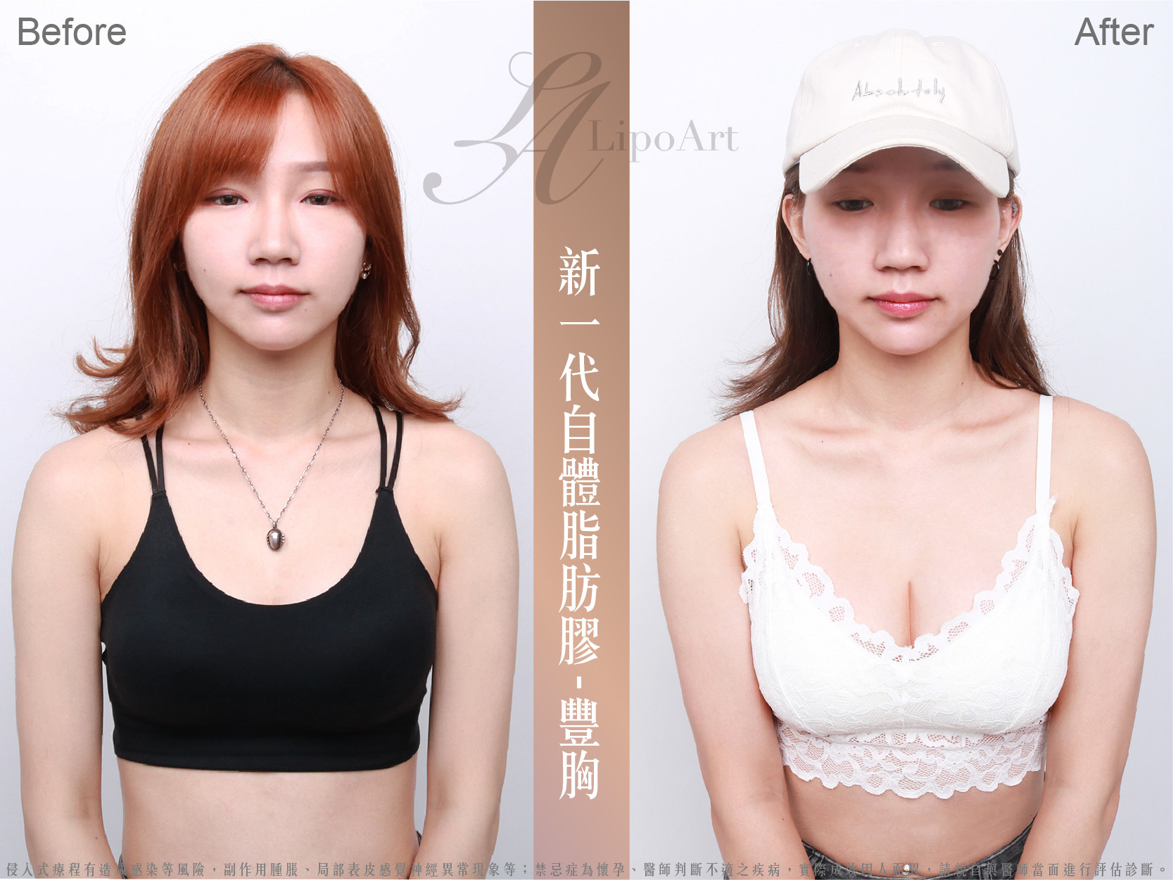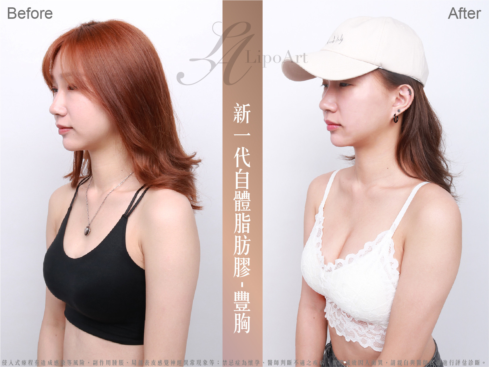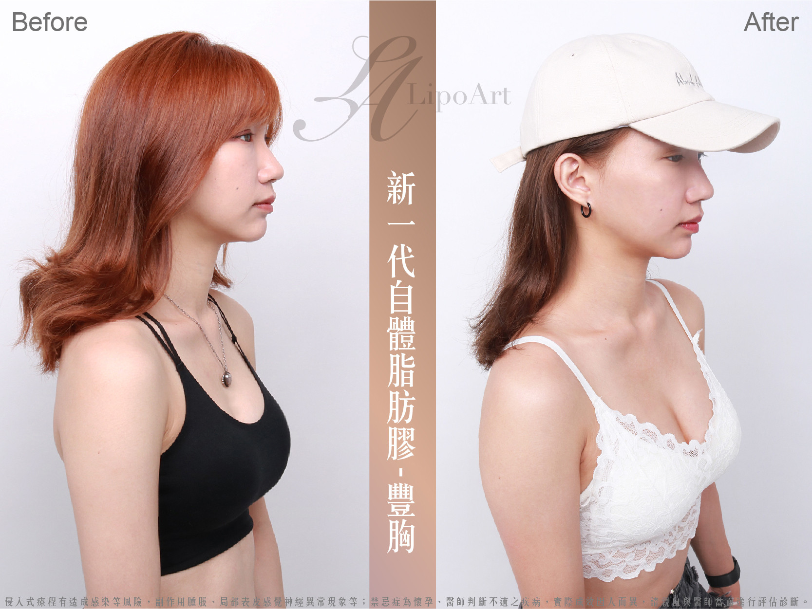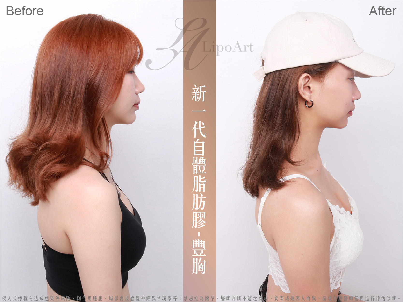 ▲術後整體紀錄(右):經過自體脂肪豐胸後,