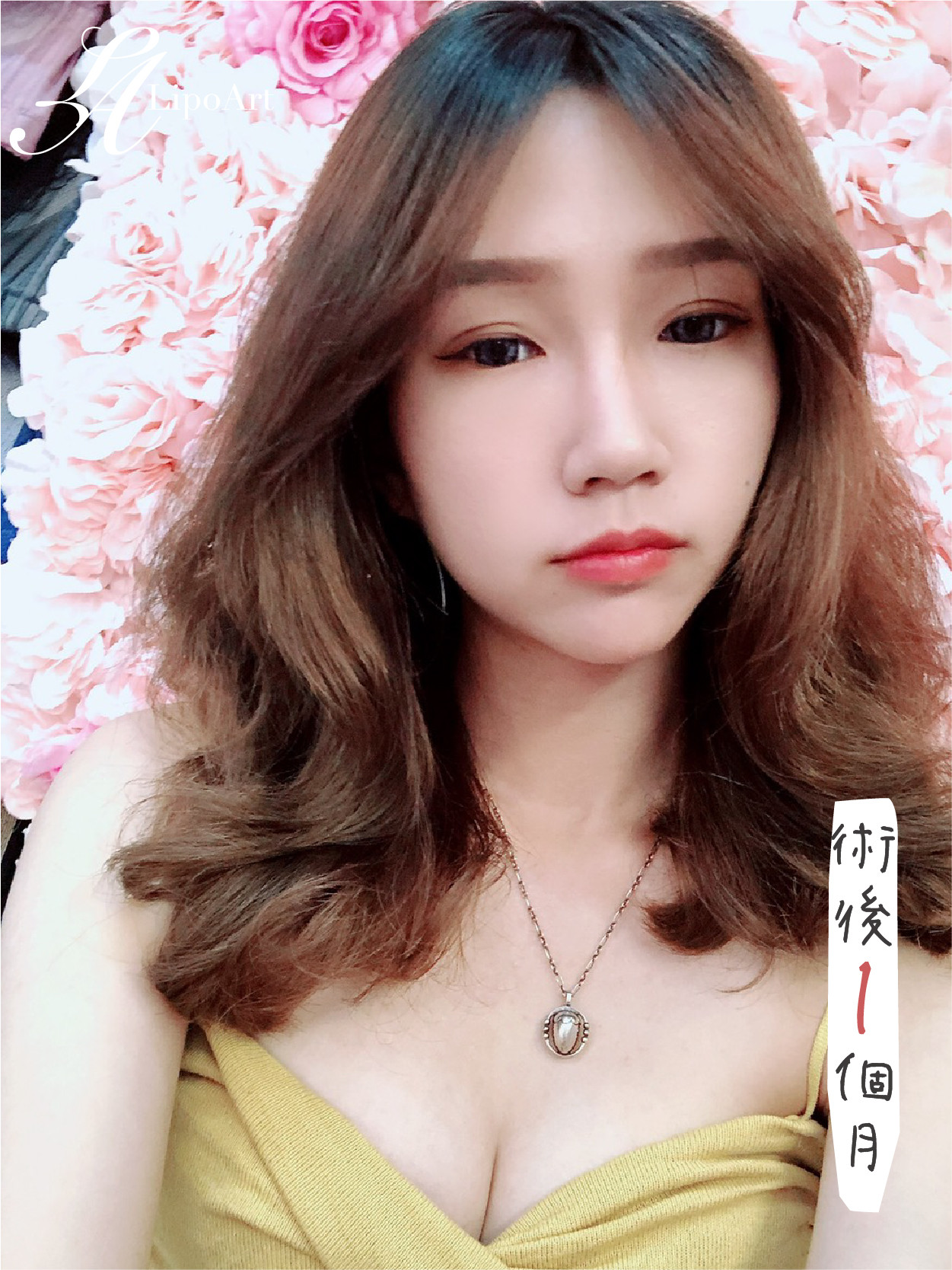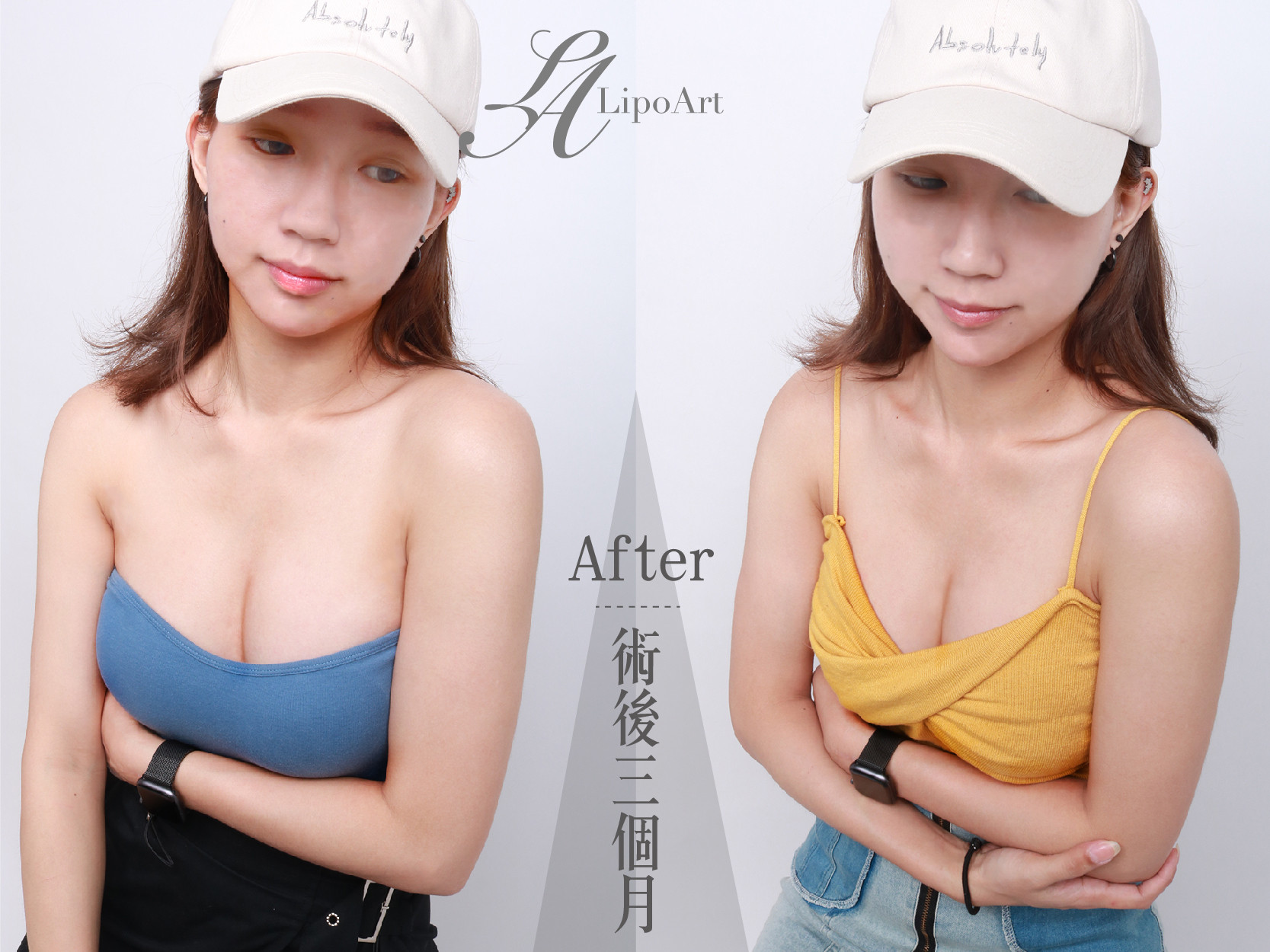▲ 術後正面紀錄(右):術後海鷗線條般的上胸曲線