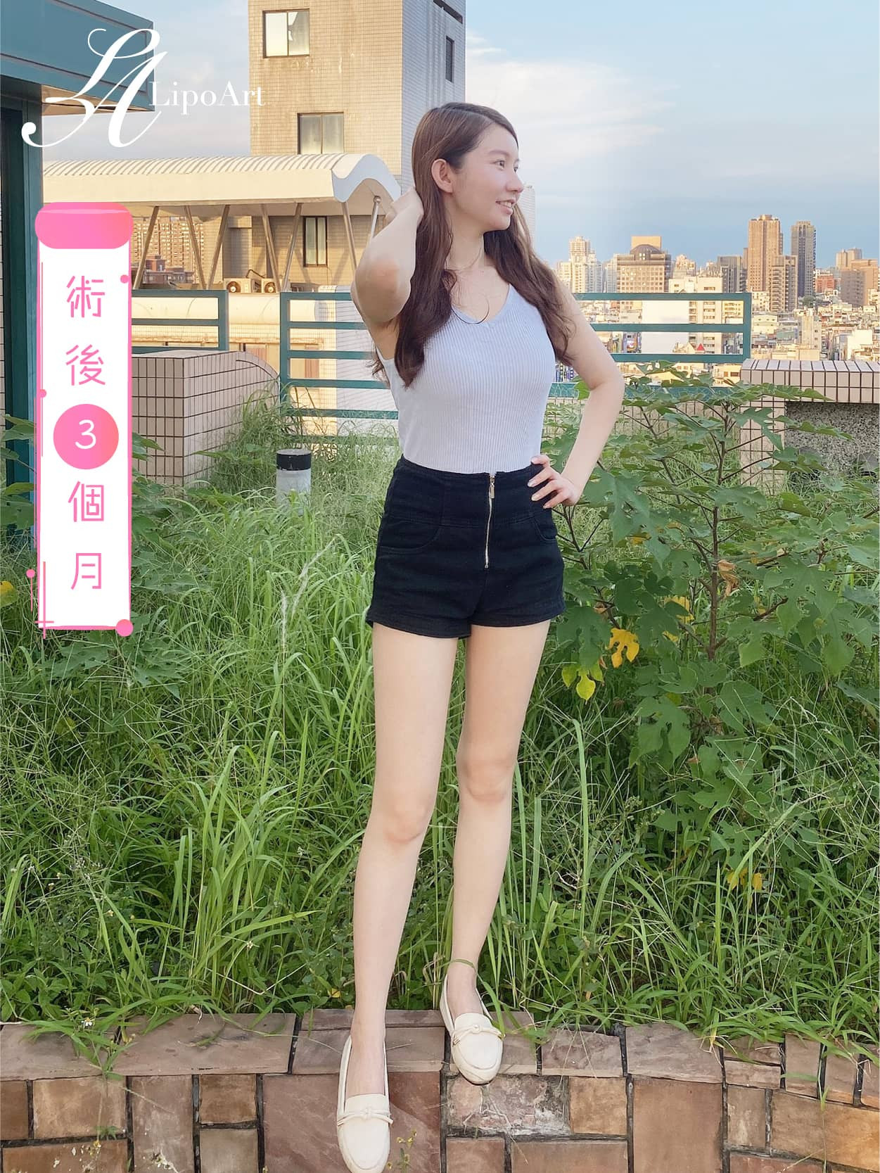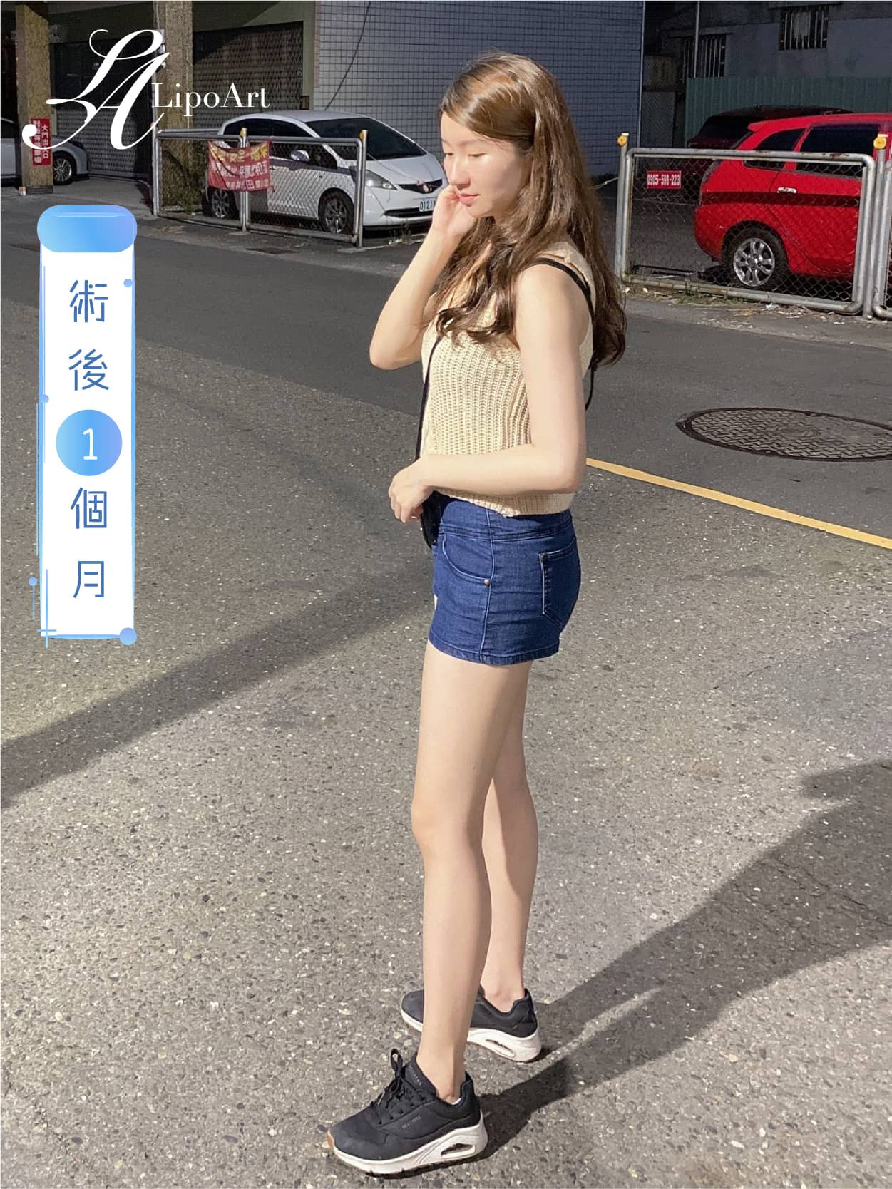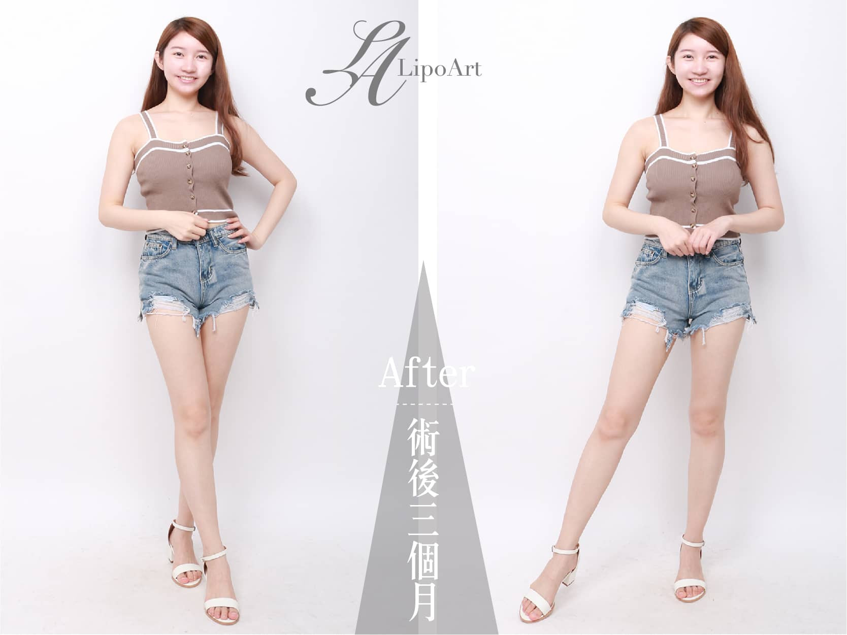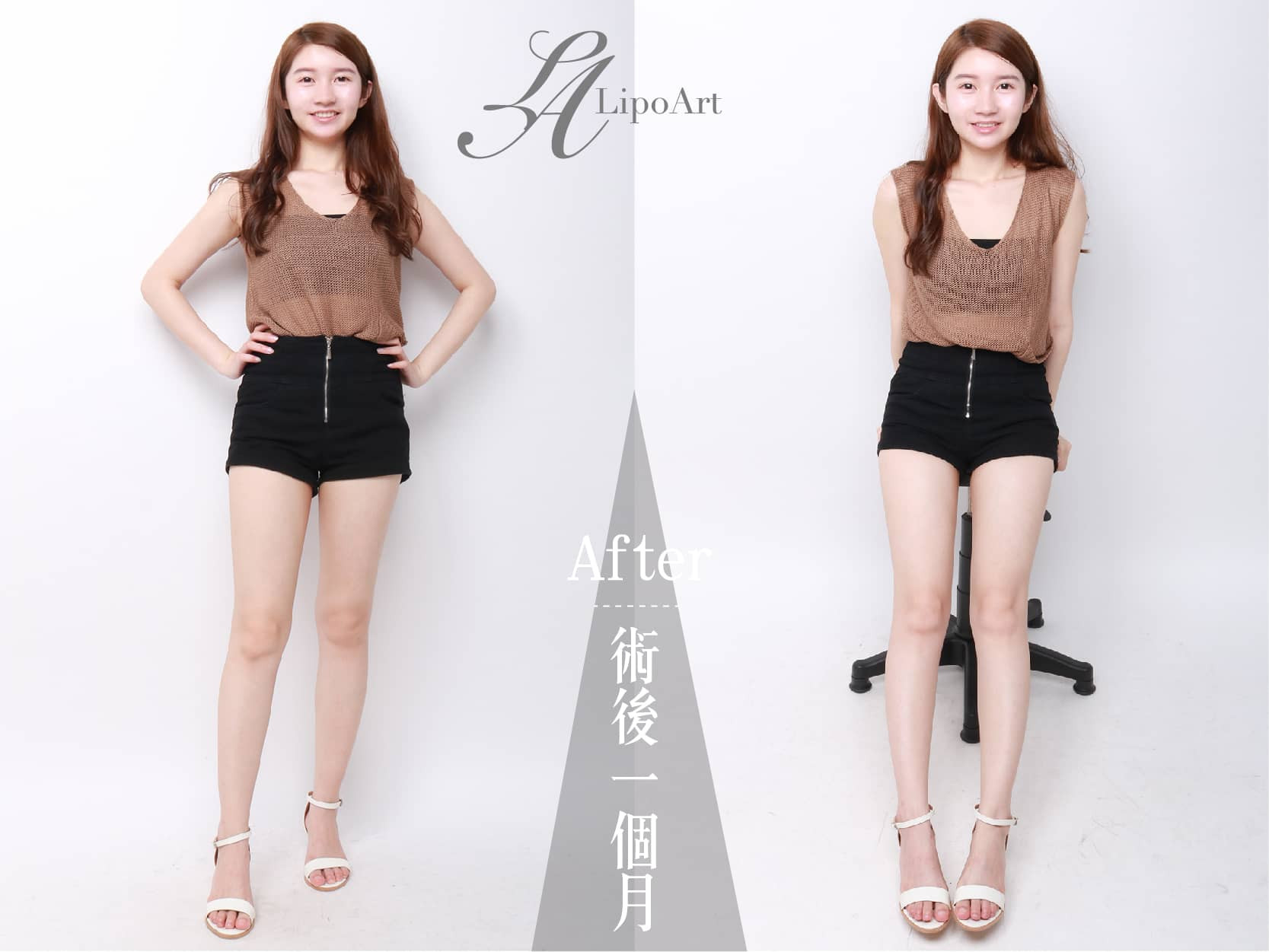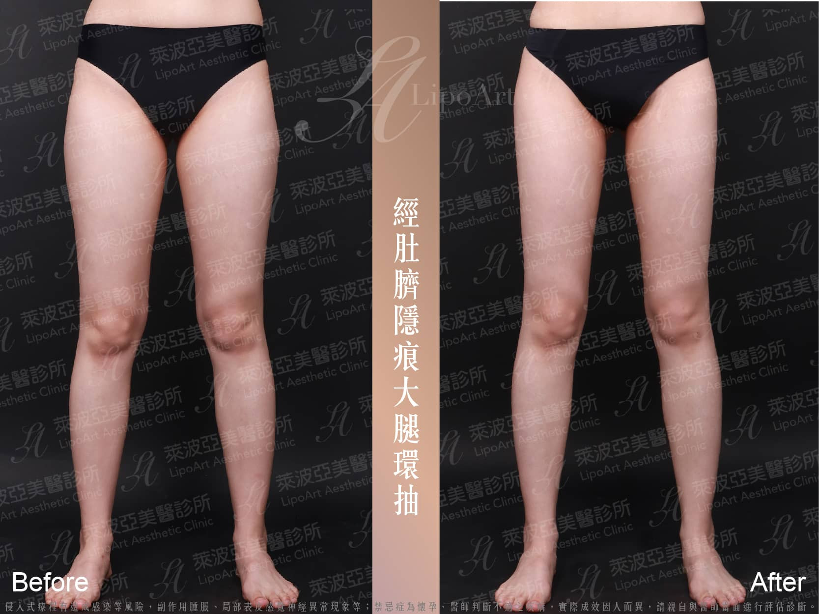 ▲術後紀錄(右):術後大腿移除多餘脂肪後,看起來腿型更加纖細修長。
