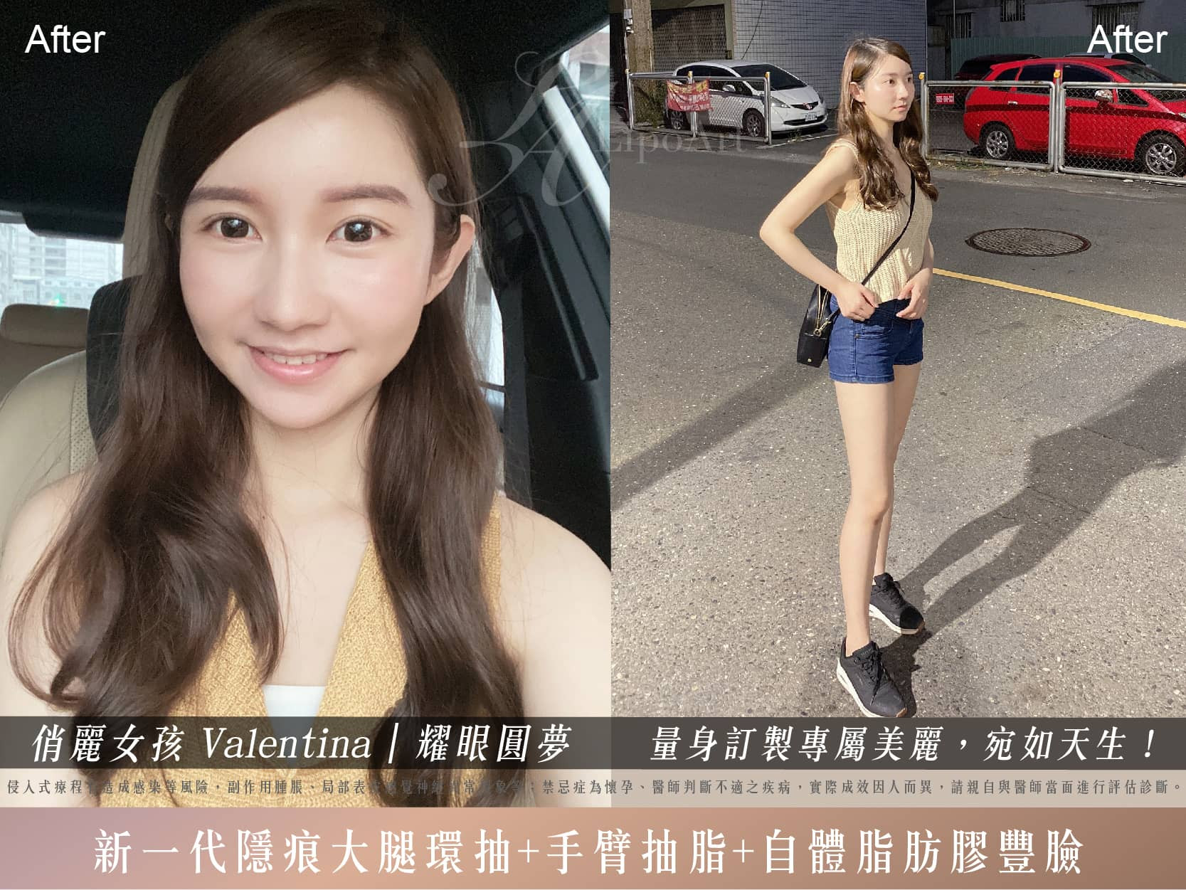 【Valentina】韓式隱痕抽脂-大腿無痕環抽+手臂抽脂+自體脂肪膠-額頭/夫妻宮/法令/淚溝/下巴/側頰-量身訂製專屬美麗,宛如天生!