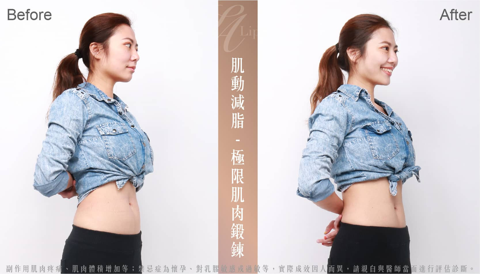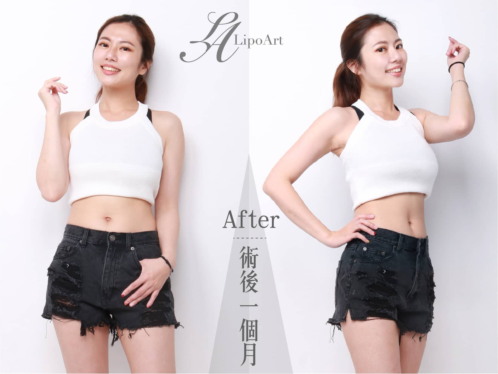 ▲術後整體紀錄(右):肌耐力提升,能看見肌肉曲線,小腹緊實平坦,腰線更加凹凸有致。