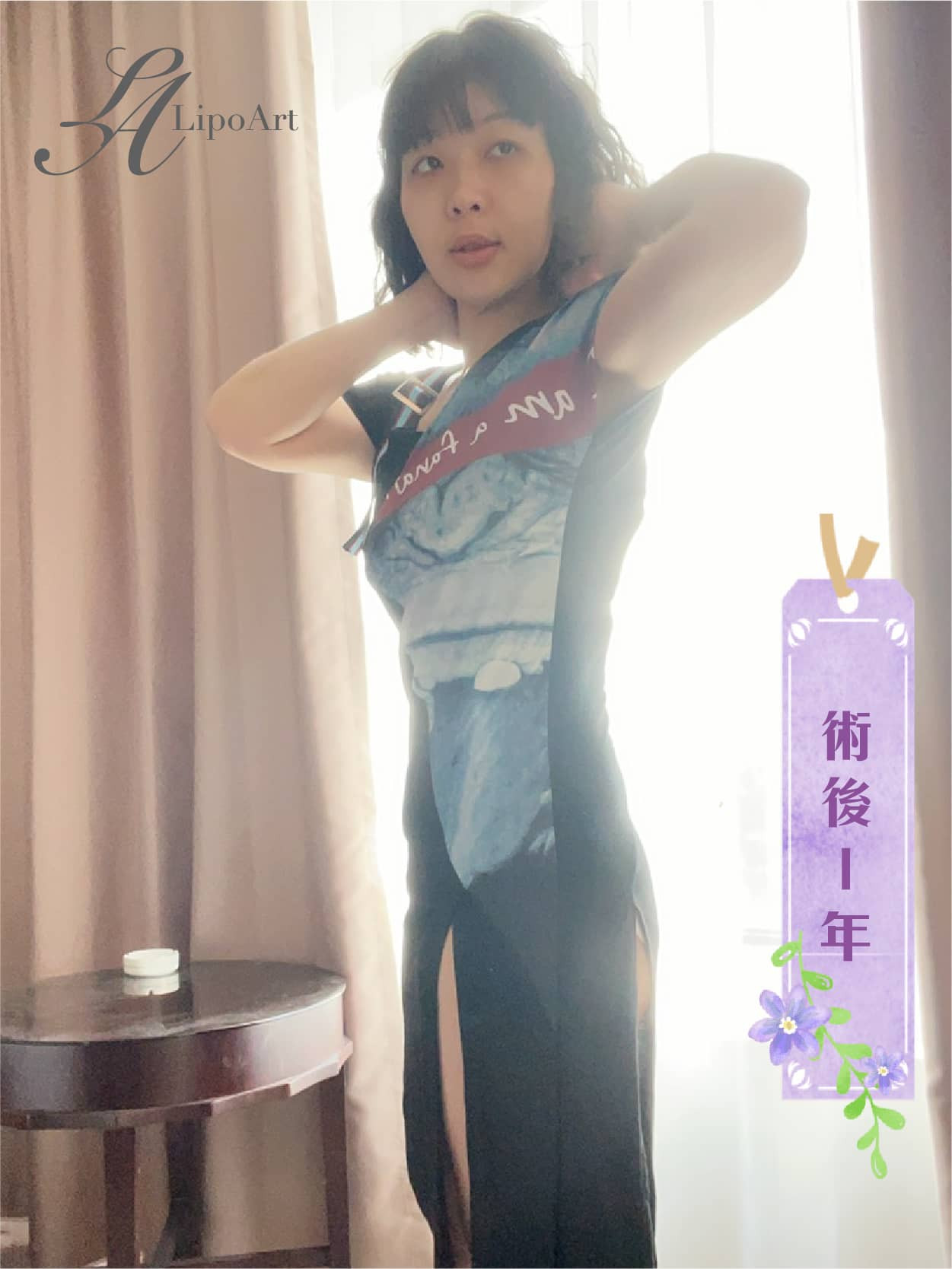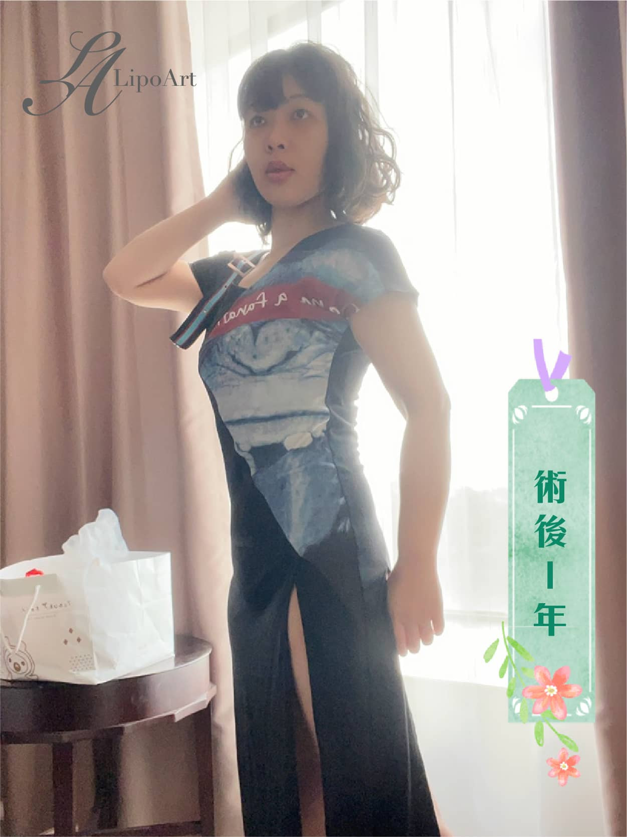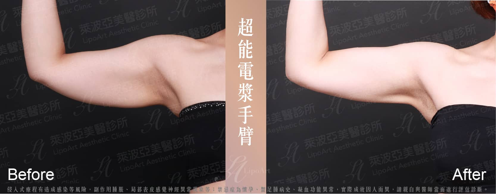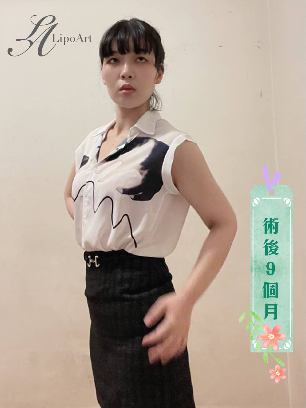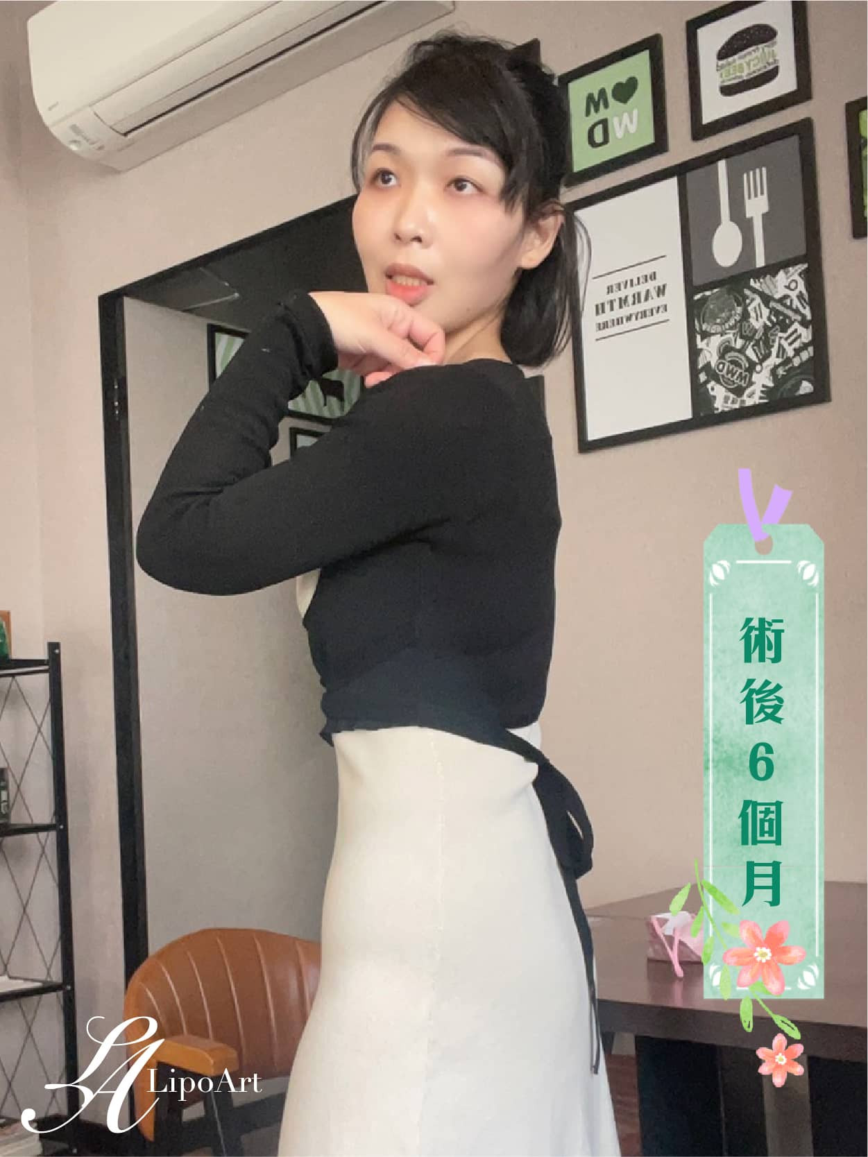 ▲術後側面紀錄(右):術後可看見腋下贅皮及掰掰袖的部分往上收,手臂內側紋理變得緊實,線條也變得更有活力、健美。