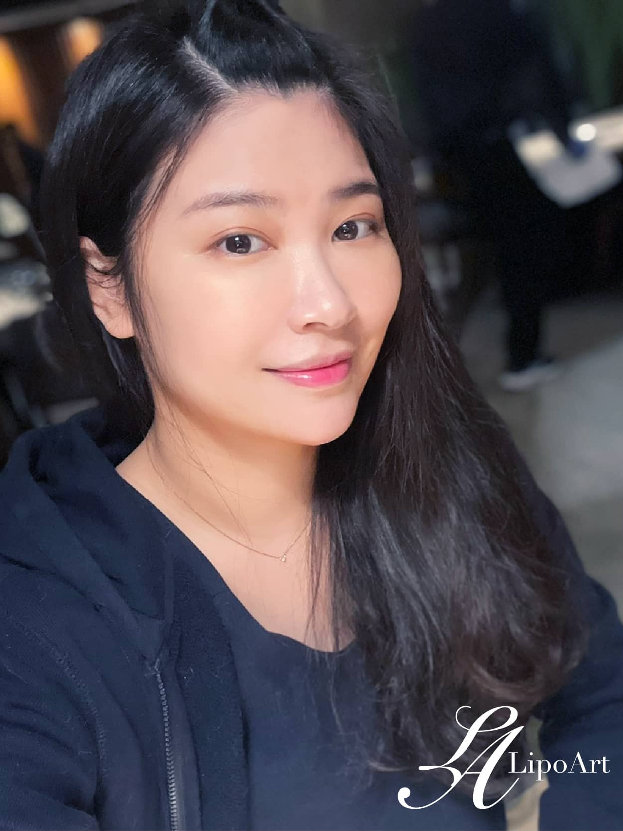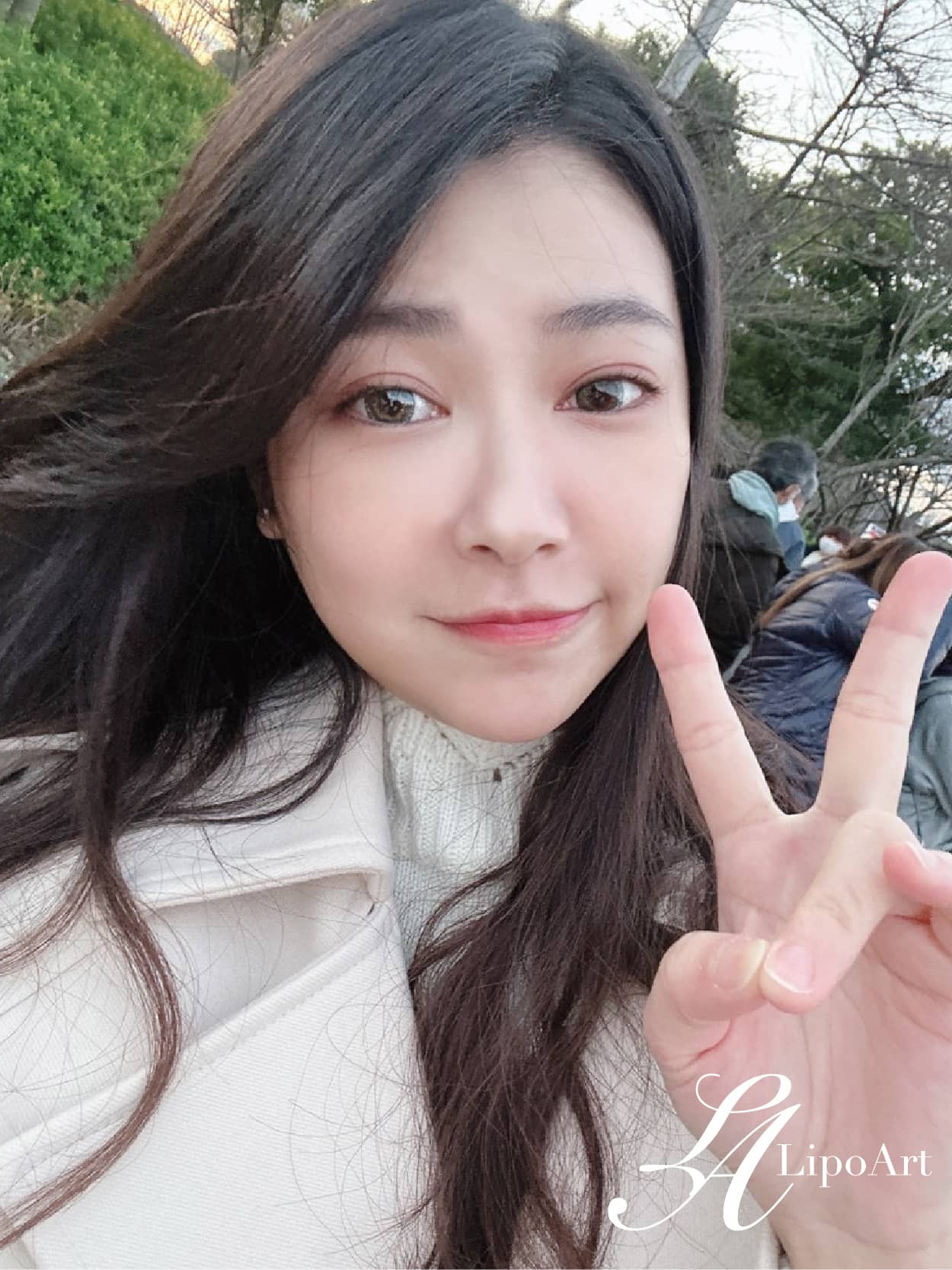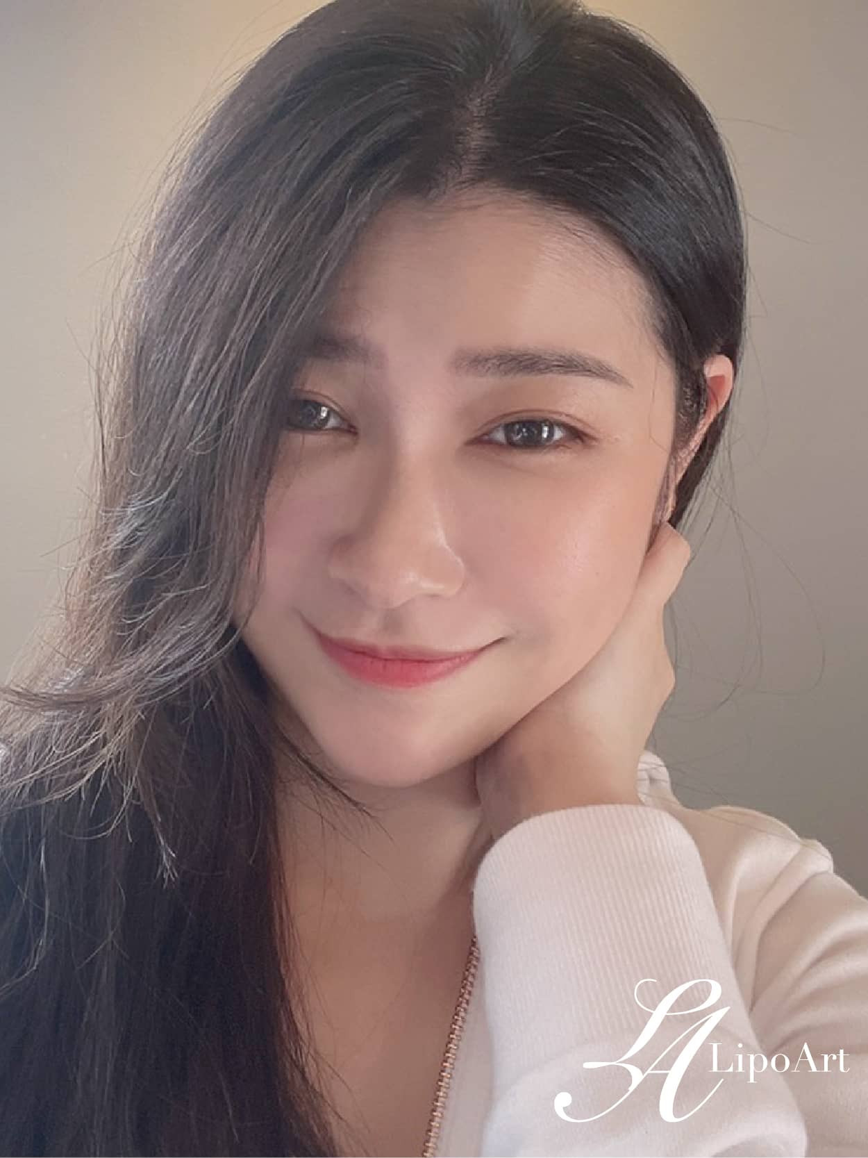 術後整體紀錄(右):下巴堆積的脂肪消失後,輪廓線變得更加立體,下顎線也隨之出現,整體臉型變得小巧精緻,更添幾分女人味。