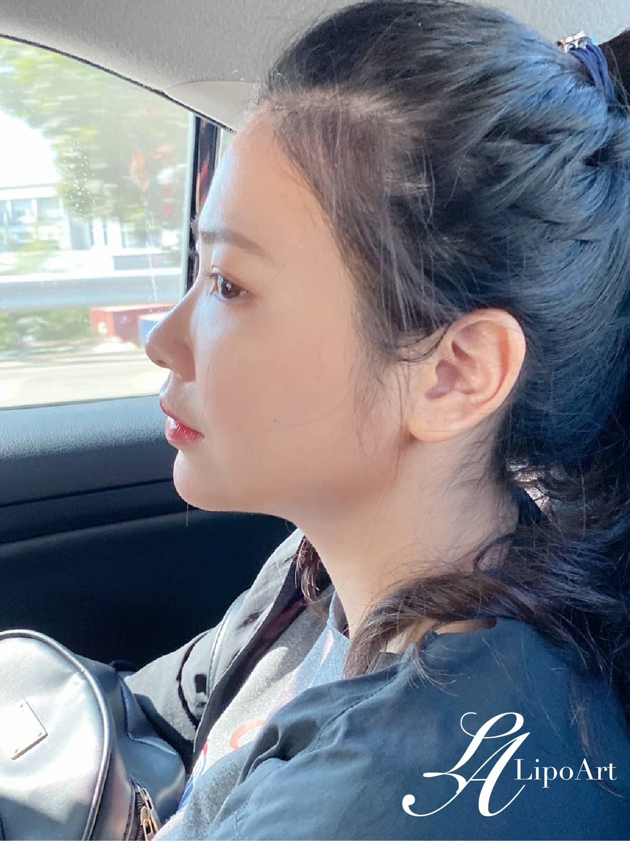 差不多術後一個月,在我和閨蜜出去玩的時候,那時候在車上,我看著窗外的風景,突然身旁的閨蜜驚呼:「你別動!別動!我幫你拍照!」,然後把我的側臉給拍下來並給我看的那一刻,真的真的很驚訝⋯⋯我這時候左邊的臉,下顎線竟然已經清晰起來了!