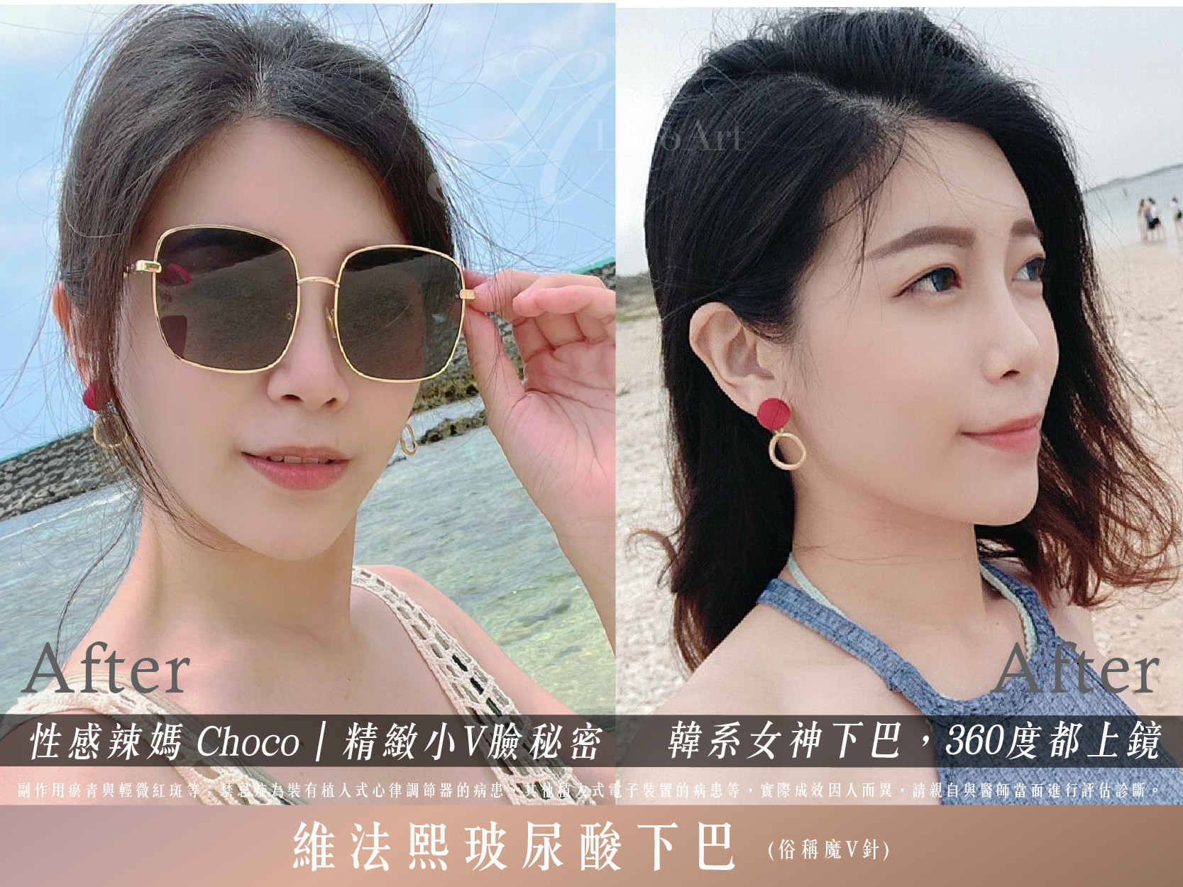 施打後一週,我自己做了術前(左邊)、術後(右邊)的照片對比,成果真的讓我大吃驚!下巴明顯有了漂亮的比例延伸,整個臉感覺整整小了一號!摸起來的觸感也很自然~真的是完美呈現了什麼叫「小 V 臉」啊!