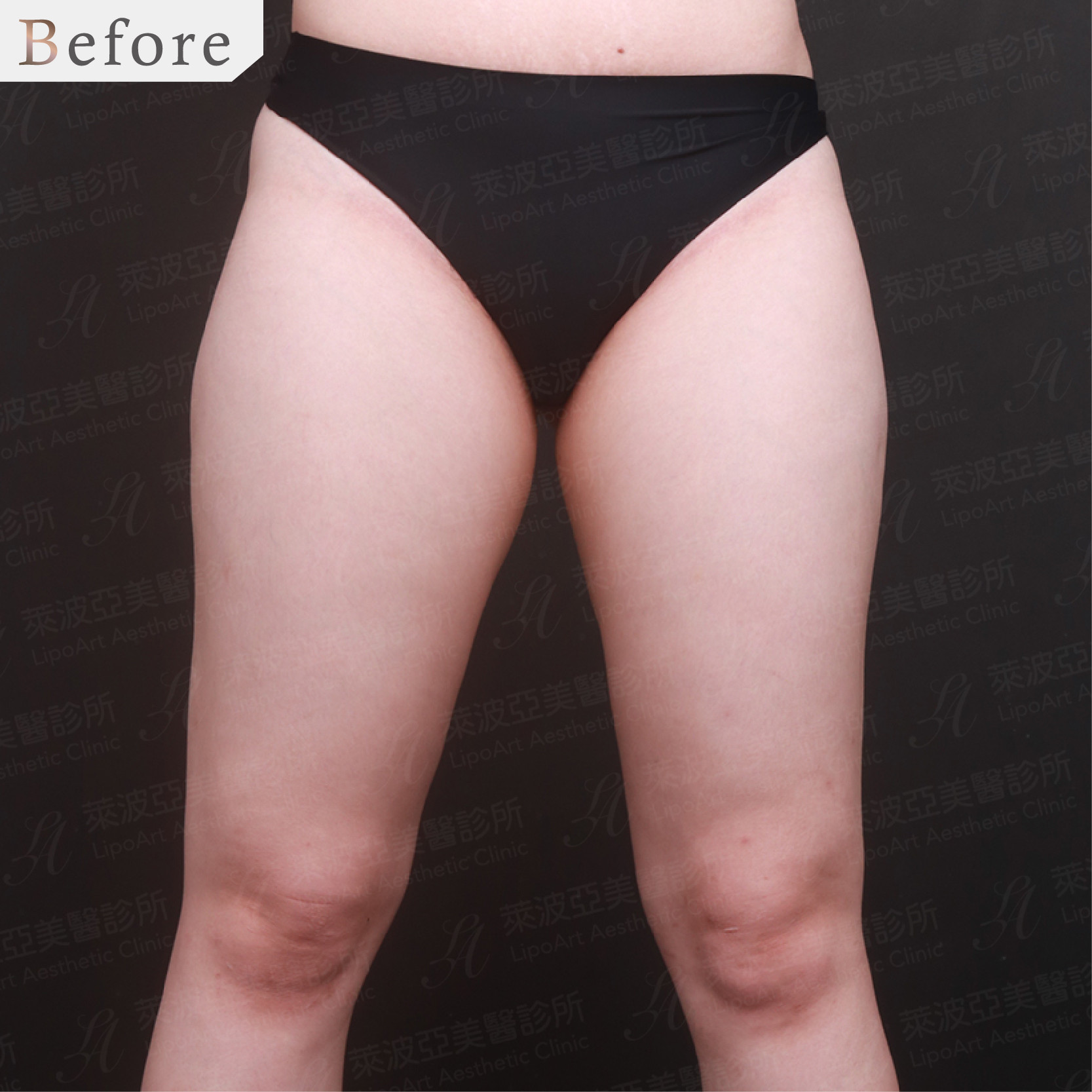 術前(左):大腿內外側脂肪囤積厚重,使身形變成水梨形。