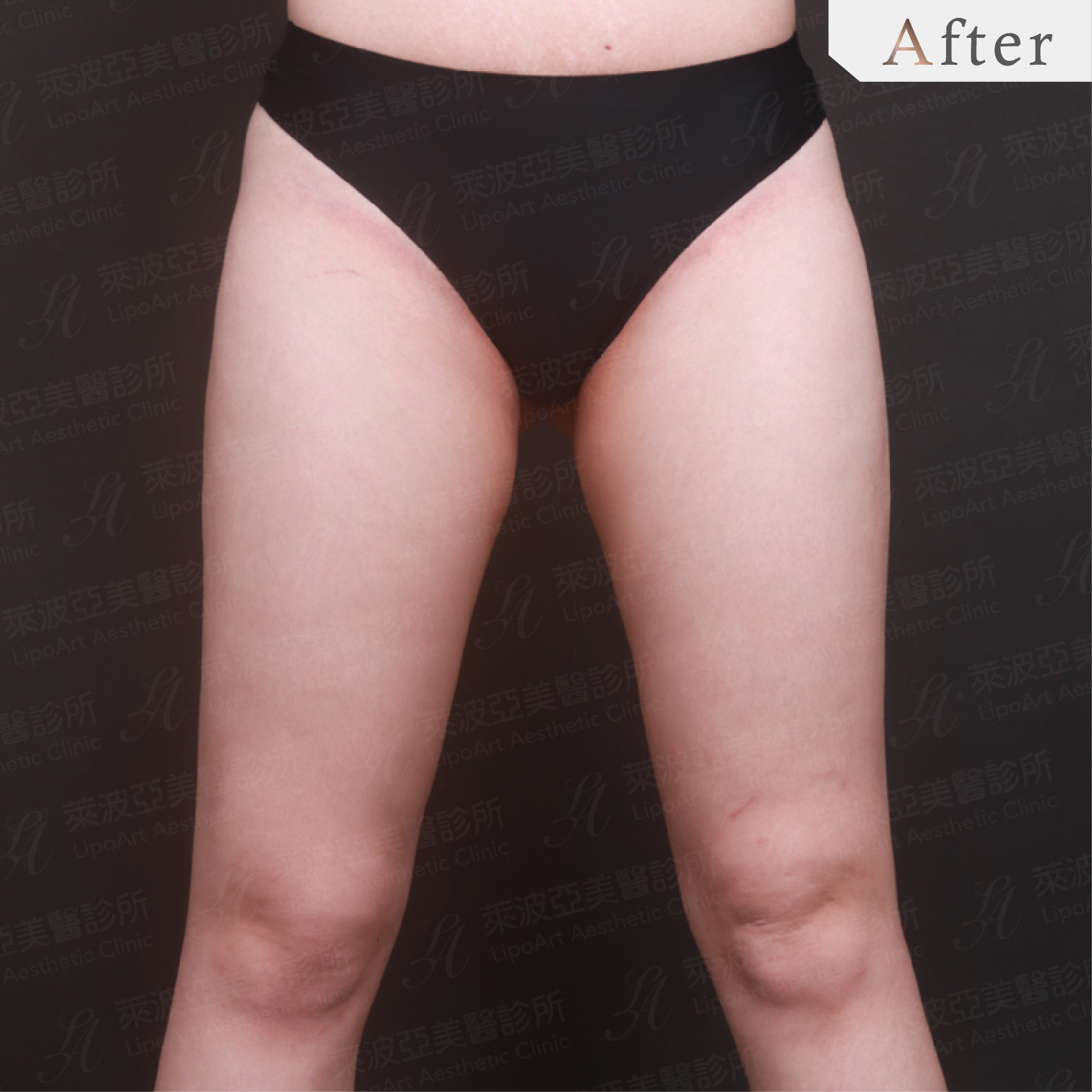 術後(右):大腿線條變得纖直勻稱,體態苗條有形,增高視覺比例。