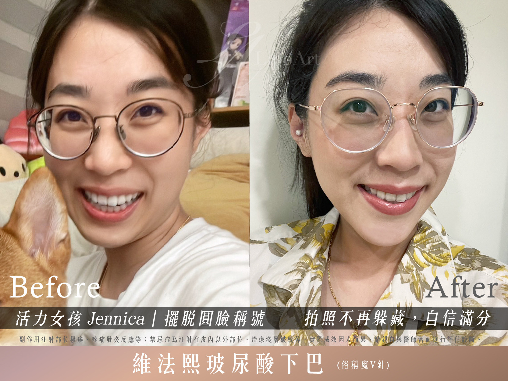 我是 Jennica,從小到大一直都很在意臉型,總覺得拍照時不夠上相,總顯得臉好大!直到在朋友的鼓勵下,到萊波亞找曾偉琦院長諮詢,才知道原來依照臉部比例來看,我的下巴比例天生偏短,導致臉型偏圓。