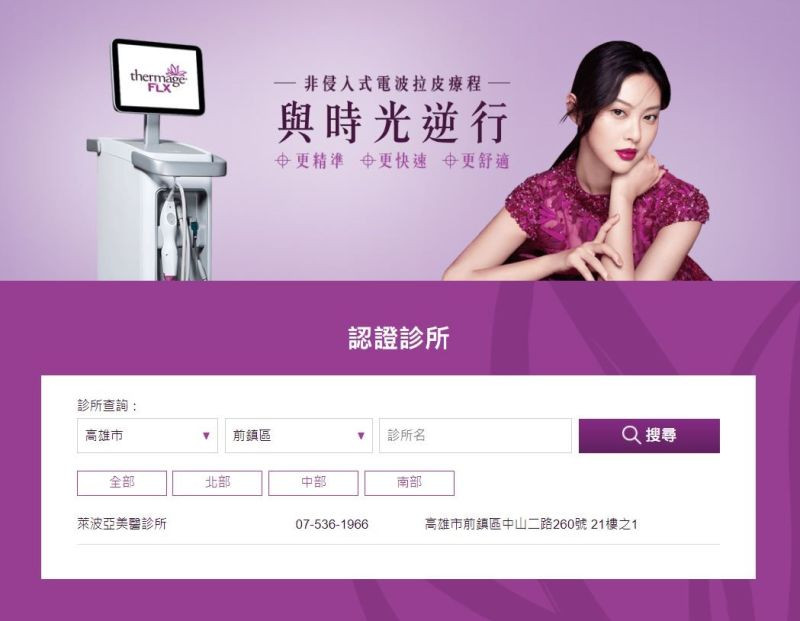 Thermage FLX® 鳳凰電波原廠認證診所查詢:http://www.thermage-flx.net/clinic.php