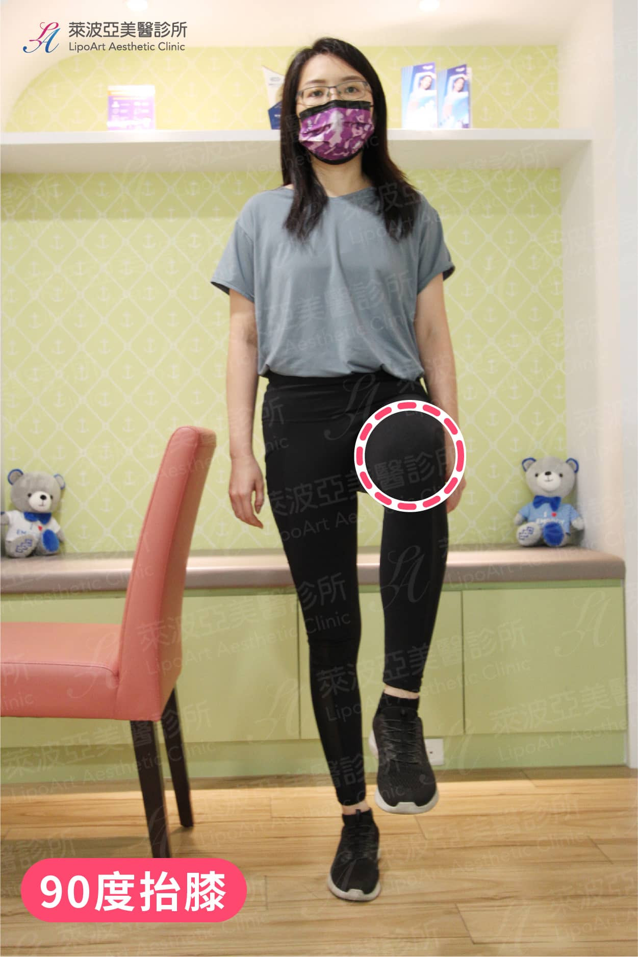 (2) 訓練包含大腿前側的股四頭肌和後側膕繩肌,強壯的肌肉可以增加膝關節的穩定度,並且在身體支撐體重的時候,減輕軟骨的負重。
