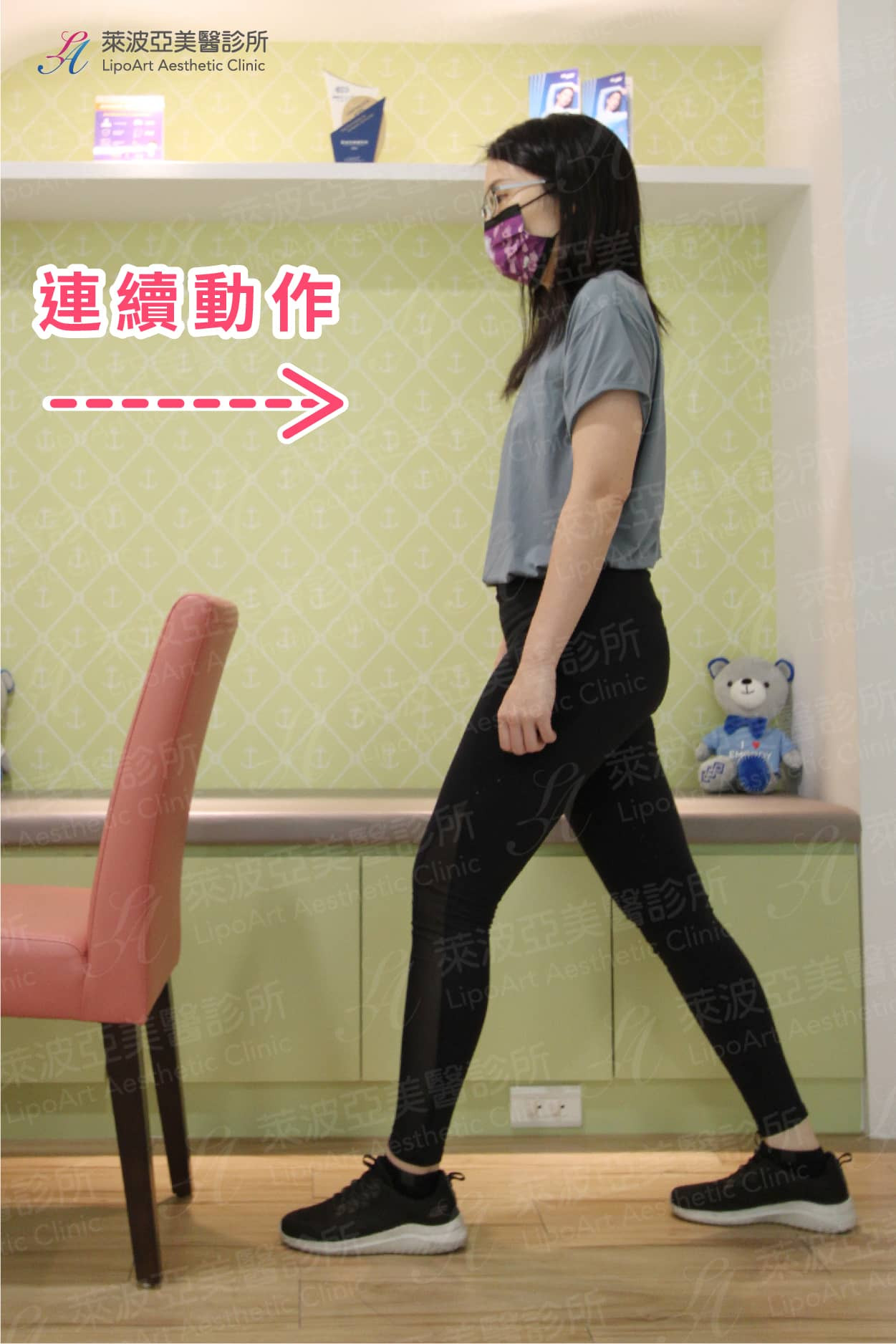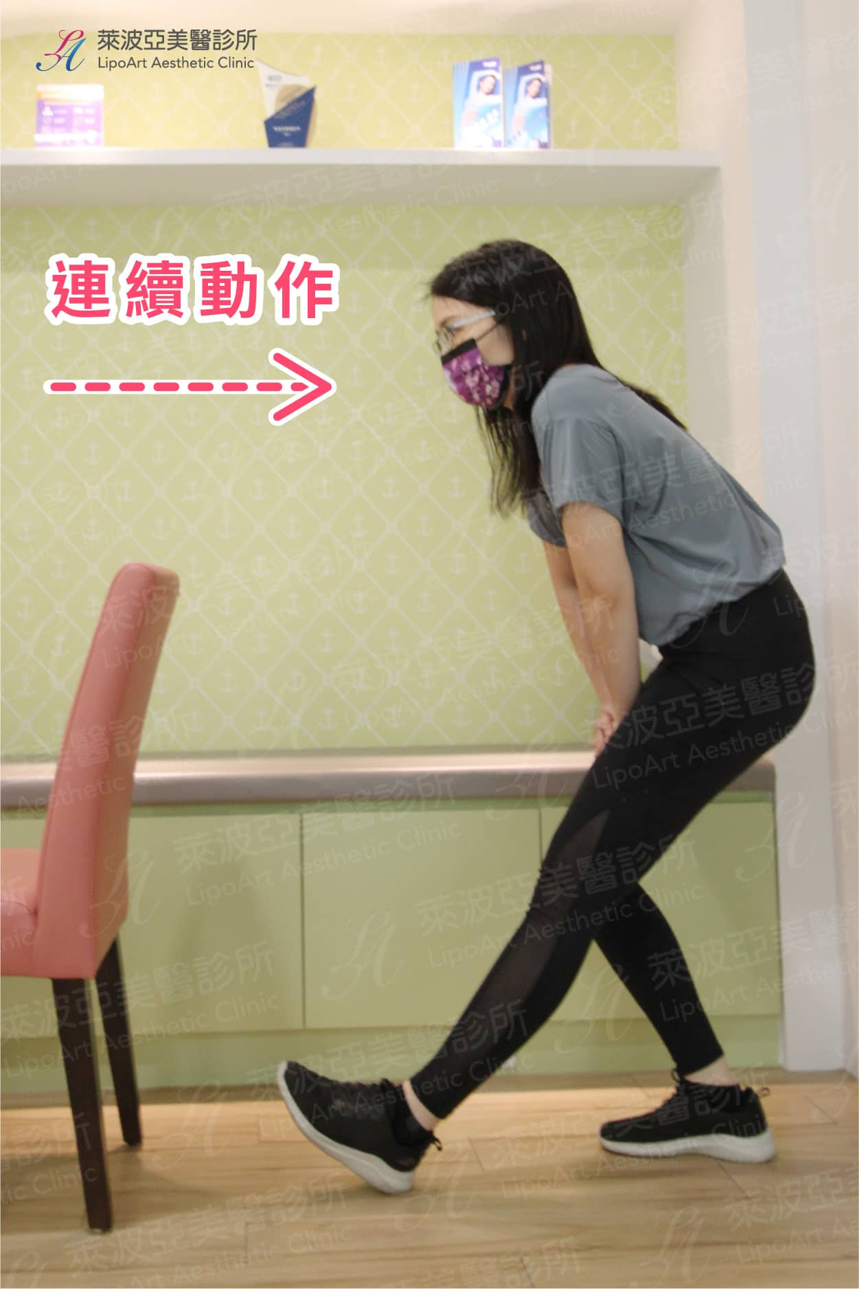- 第一種方式:左右腳輪流交替登階,左右腳算一次,總共重複 20 次 / 組。