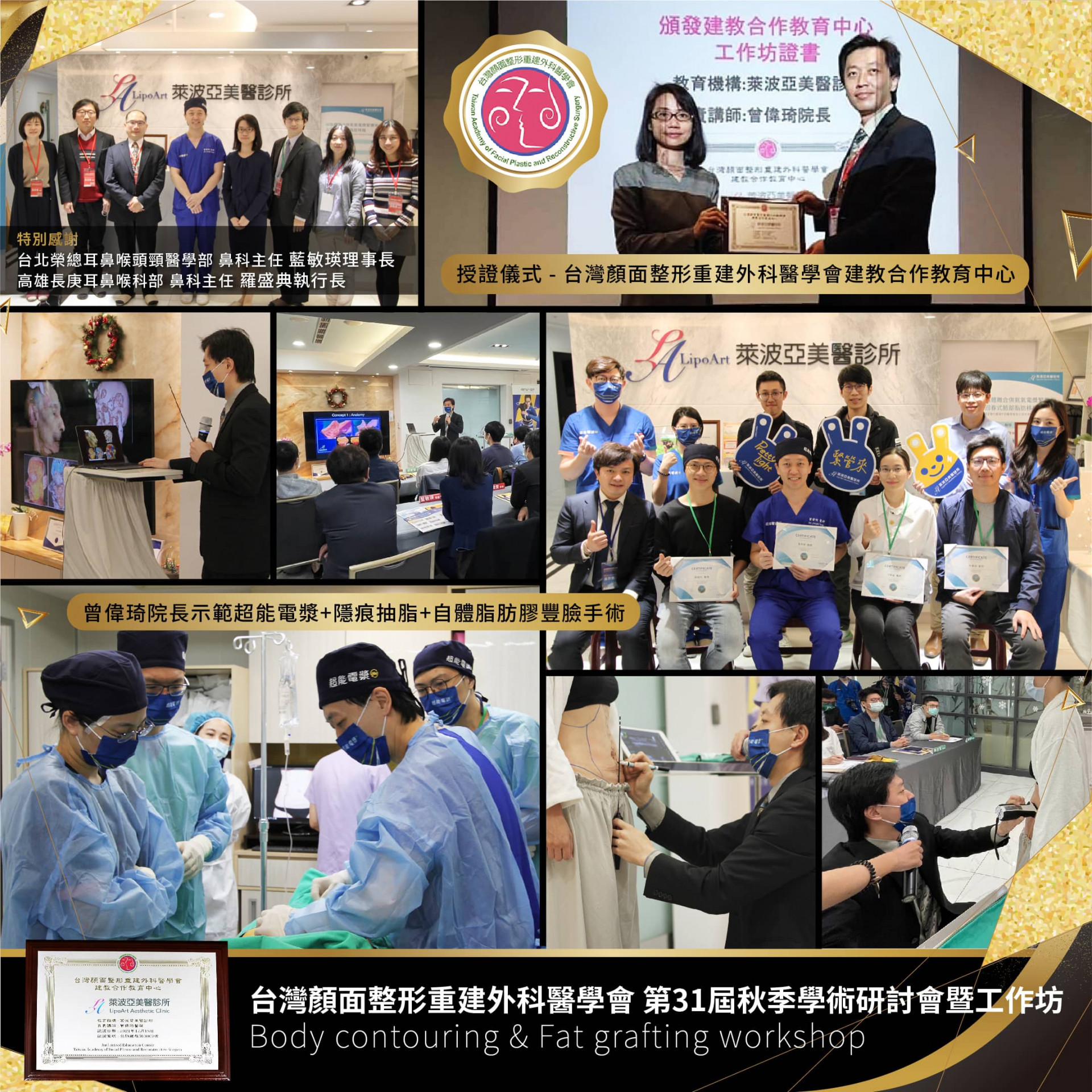最新消息 《超能電漿》原廠技術團隊參訪,種子教官-曾偉琦院長經驗交流分享2024/03/28 《中華民國美容醫學醫學會》2024年外科美容教育訓練 【進階抽脂概念】示範課程2024/03/12 【即視青春,拉提隨我】新機到診!Ulthera美國極線音波-明星級拉提療程2023/12/27 《台灣耳鼻喉頭頸外科醫學會》第115屆學術演講會2023/12/27 《台灣顏面整形重建外科醫學會》第35屆秋季學術研討會2023/10/18 《英卡思亞洲年會》2023 IMCAS Asia in Bangkok2023/06/21 《臺灣皮膚科醫學會》2023 AMWC Asia-TDAC 皮膚暨美容手術論壇2023/05/19 雷射不綁套裝打好打滿|超夯微整形懶人包-日常心肌! 總是擔心自己被「話術」、「價格」給蒙蔽雙眼,療程後才發現跟自己想的都不一樣!?萊波亞高CP值的皮秒雷射 …2023/01/13 《台灣顏面整形重建外科醫學會》第33屆秋季學術研討會 由整形外科、耳鼻喉頭頸科、皮膚專科、眼科、牙醫部等各領域頂尖醫師一同與會,除了分享臨床經驗、技術交流 …2022/10/03 《案例分享》產後媽媽的美麗法則 ♥ 媽咪專屬美容醫學療程指南,妳值得更好! 公開產後媽媽成功案例!韓式隱痕抽脂+超能電漿》同步實現產後瘦身與塑身,告別難纏脂肪與肌膚鬆弛困擾。自 …2022/09/14 《療程新知》其實抽脂可以「更安全」,只怕妳不知道!? 傷口疤痕、手術時間長、失血過多、大片瘀青、劇烈疼痛、術後引流管、漫長恢復期⋯⋯上述種種是妳害怕抽脂的 …2022/05/13 《APS 韓國美容整形外科醫學會》自體脂肪膠面部年輕化之應用 由韓國美容整形外科醫學會主辦的年度盛會 Aesthetic Plastic Surgery ,曾偉琦院長受邀分享歷年自體脂肪 3. …2022/04/08 《台灣顏面整形重建外科醫學會》第31屆秋季學術研討會暨工作坊 本次學術研討會,於萊波亞美醫診所舉行工作坊 (Body contouring & Fat grafting workshop) 由體雕美學專家- …2021/12/22 《國際顏面整形手術高峰會》2021 Global Summit of Facial Plastic Surgery 來自世界各國110位顏面整形外科的頂尖醫師將接力,進行55小時的線上講座,帶來多樣性的顏面整形研究成果以及 …2021/08/22 《安心醫美》秉持「客戶安全第一」重視所有細節,旨在給您卓越服務! 當疫情一進入到台灣時,萊波亞不僅在第一時間就規畫好了完善的防疫流程及措施,以確保每位同仁和顧客的健康 …2021/06/17 「萊波亞美醫診所」開始恢復正常營業2021/06/03 《案例分享》全裸也無痕跡 ! 打造性感蜜桃曲線 裸身也不怕發現痕跡!韓式「真」隱痕抽脂,用短短的時間,就不著痕跡悄悄地變美,甩開了蝴蝶袖,還找回大腿 …2021/05/25 《安心醫美》關於萊波亞休診2週,給萊粉的一封信2021/05/19 《臺灣皮膚科醫學會》2021 AMWC Asia - TDAC 世界美容醫學高峰會亞洲大會暨臺灣皮膚科美容醫學學術研討會2021/05/18 《台灣醫用雷射光電學會》春季學術研討會「EMSCULPT 肌動減脂」臨床治療經驗2021/03/26 《超能電漿專業認證教育學院》Launch Symposium學術研討會2021/03/15 110年度診所美容醫學品質認證說明會-通過評鑑機構經驗分享2021/01/11 110年度除刺青義診開放報名囉!2021/01/08 賀! 曾偉琦院長 當選第六屆台灣顏面重建整形外科醫學會(部定次專科)理事2020/10/26 《中華民國美容醫學醫學會》自體脂肪膠移植新觀念 : 從填充到再生2020/10/13 萊波亞所有療程皆可使用振興三倍卷2020/07/01 《專業領軍》萊波亞美醫診所首批通過診所美容醫學品質認證2020/06/03 《十大防疫措施》 萊波亞用心,讓您放心!嚴格守護您的健康與美麗2020/04/06 《IFFPSS》 第九屆顏面整形世界大會,打造美容醫學新時代!2020/02/11 《防疫宣傳》武漢新型冠狀病毒2020/02/03 《中華民國美容醫學醫學會》脂肪移植大躍進 - 自體脂肪膠2019/09/26 《客戶安全》萊波亞堅持使用合法原廠正貨-喬雅登玻尿酸2019/07/03 《客戶安全》萊波亞手術團隊皆通過ACLS高級心臟救命術訓練課程2019/06/19 《客戶安全》萊波亞全新引進德國進口「Drager麻醉機」2019/03/26 《專業領軍》曾偉琦院長通過2019醫美特管辦法抽脂審查 由衛生福利部於2018年9月公布,並於2019年1/1開始實施的特管法, 「單次脂肪抽出量達一千五百毫升」 「單 …2019/03/01 《持續精進》員工教育訓練-感染管控課程2019/02/26 《持續精進》員工教育訓練-內眥與外眥手術2018/12/26 《持續精進》員工教育訓練-埋線拉提2018/12/26 《持續精進》員工教育訓練-CPR+AED急救訓練2018/12/19 《持續精進》員工教育訓練-眼袋回推囊膜修復術2018/12/10 《持續精進》員工教育訓練-臉部埋線2018/10/23 《持續精進》員工教育訓練-脂肪存活概論2018/10/18 《持續精進》員工教育訓練-新式保留血管網割雙眼皮2018/09/17 《持續精進》員工教育訓練-麻醉安全2018/05/17