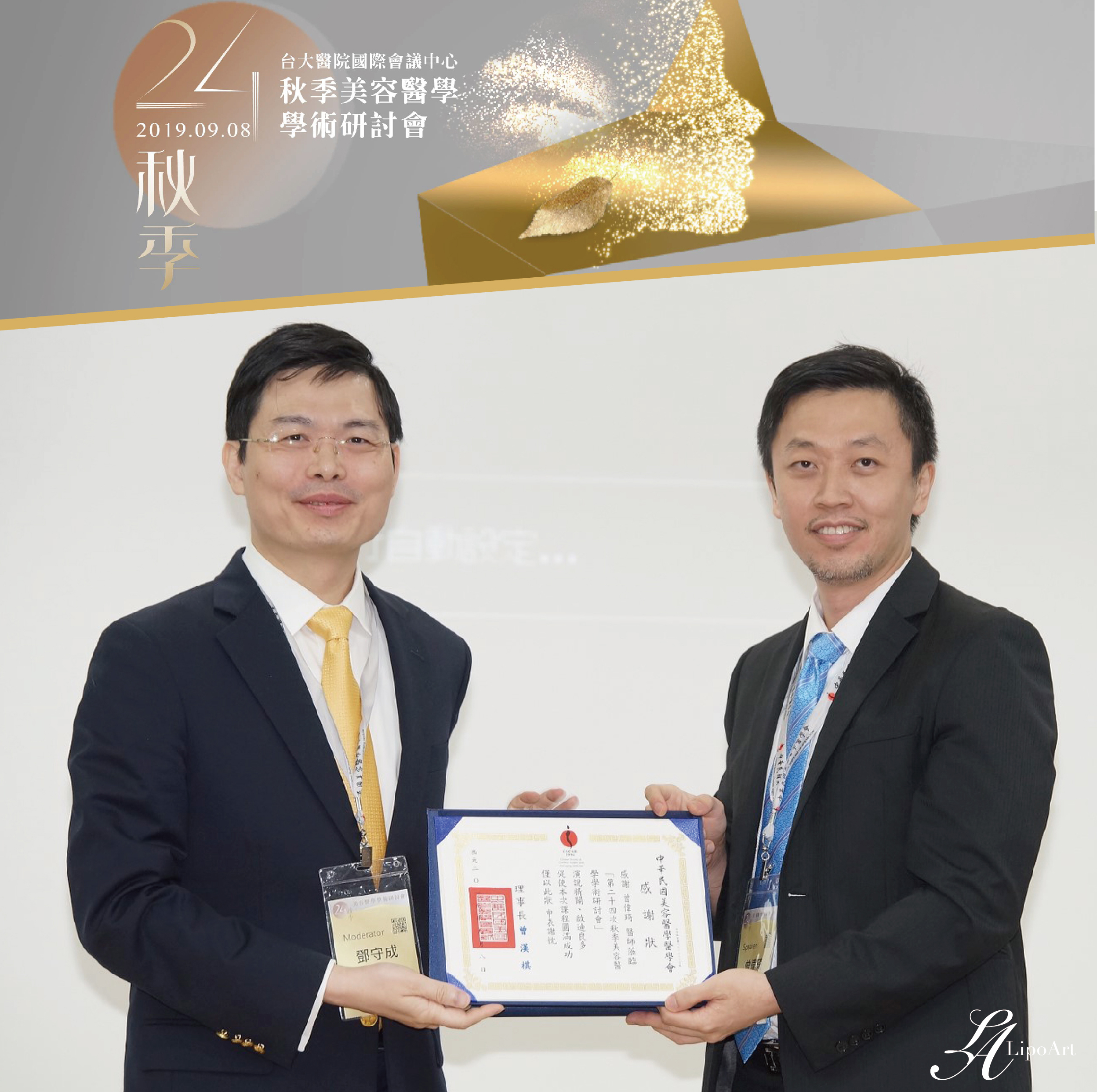 於 2019 第24次 秋季美容醫學學術研討會,講師。👏