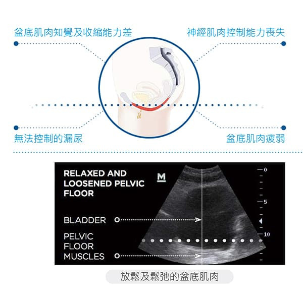 - 有輕中度尿失禁、盆腔器官脫垂問題者:強化支撐子宮及膀胱的骨盆底肌肉,改善應力性與混合性尿失禁。
