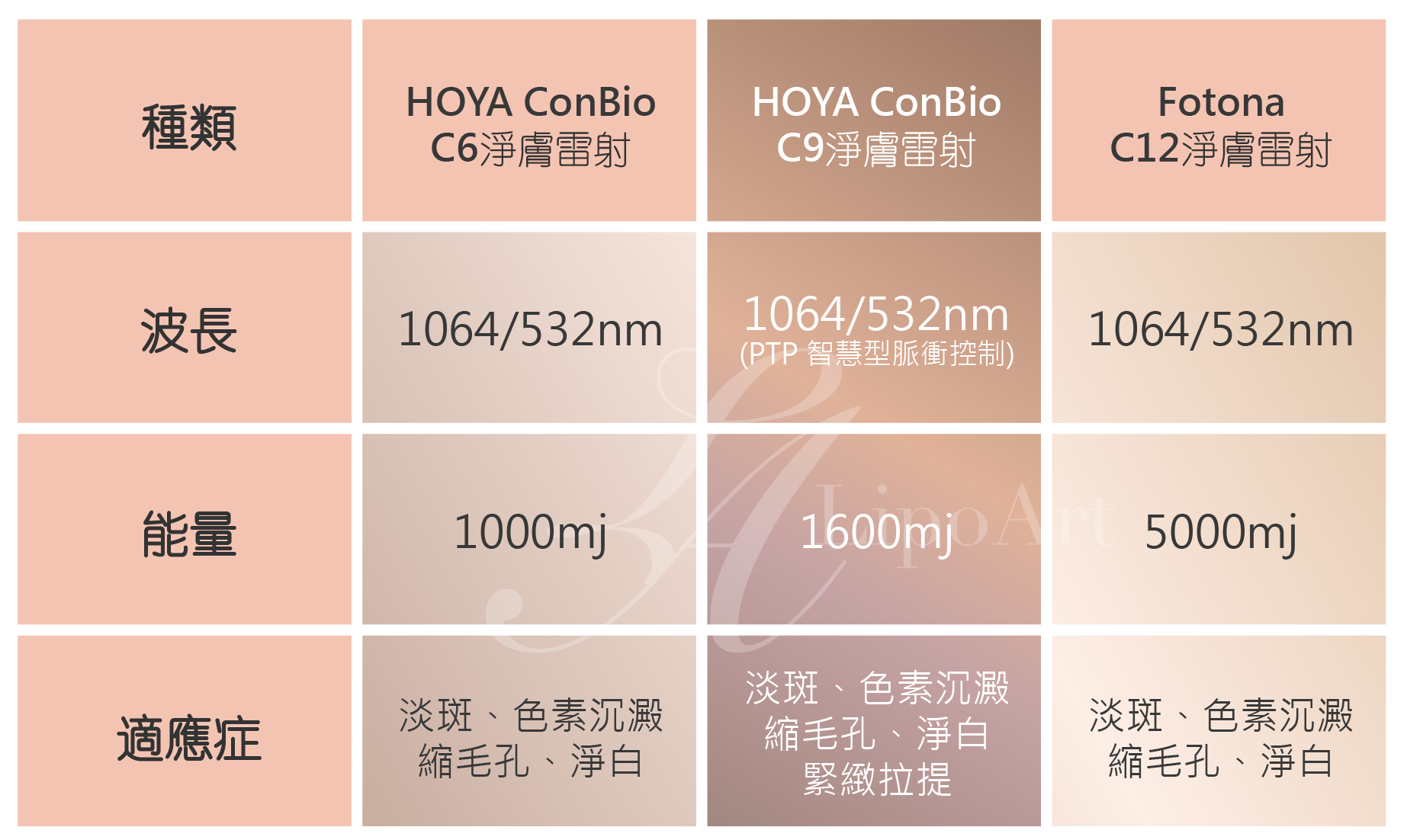 各式淨膚雷射比較