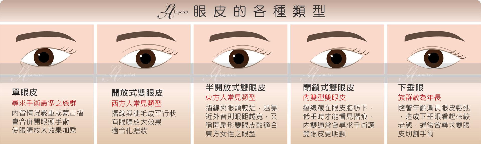 - 客製化量身:依照個人五官比例、眼睛比例、瞳孔位置、先天限制及個人喜好等全方位考慮,打造理想眼形與高度。